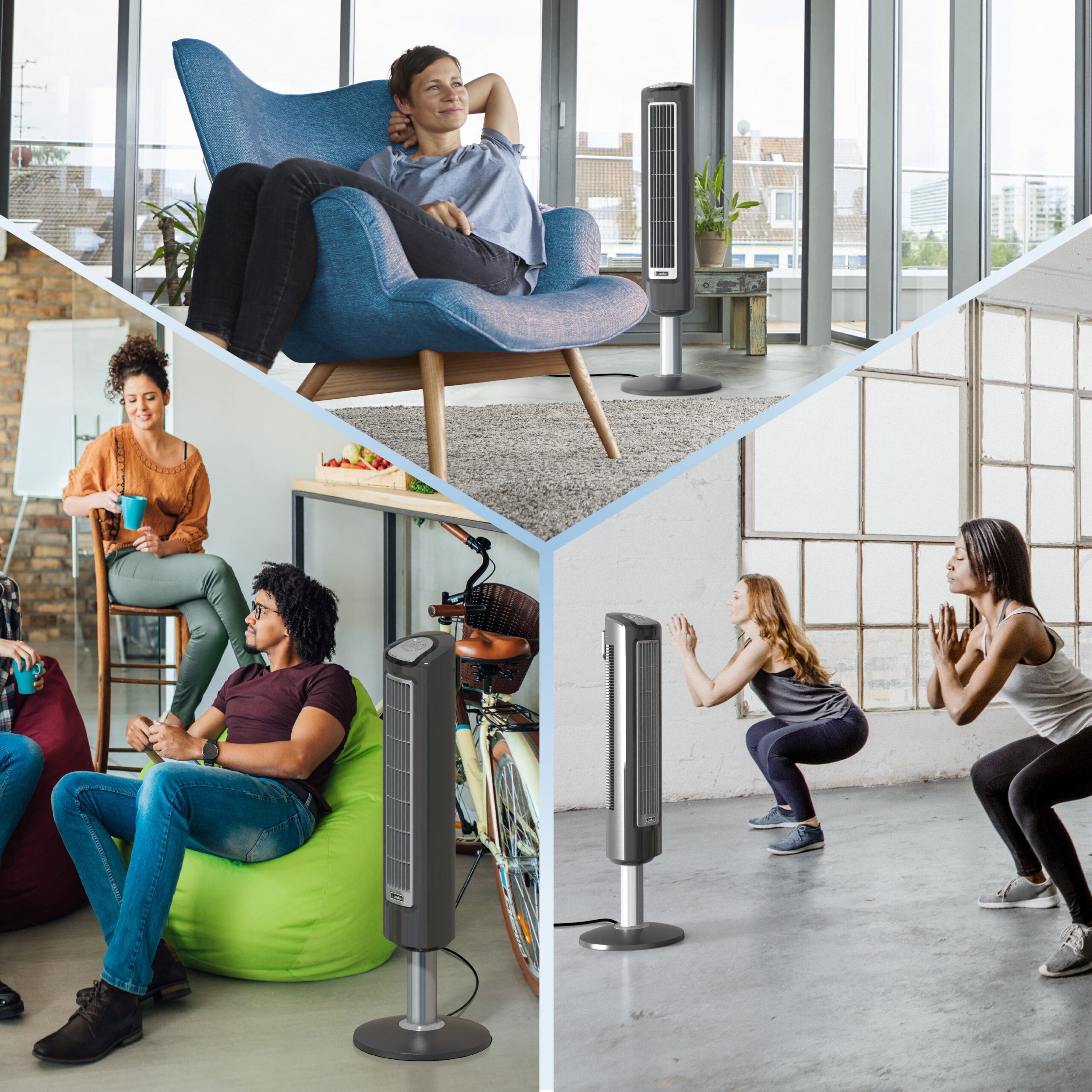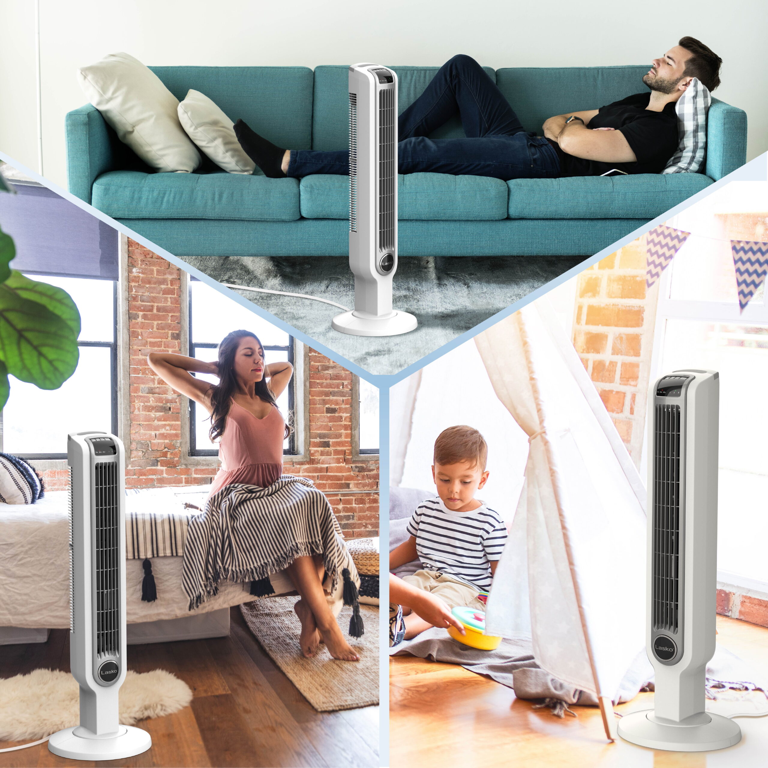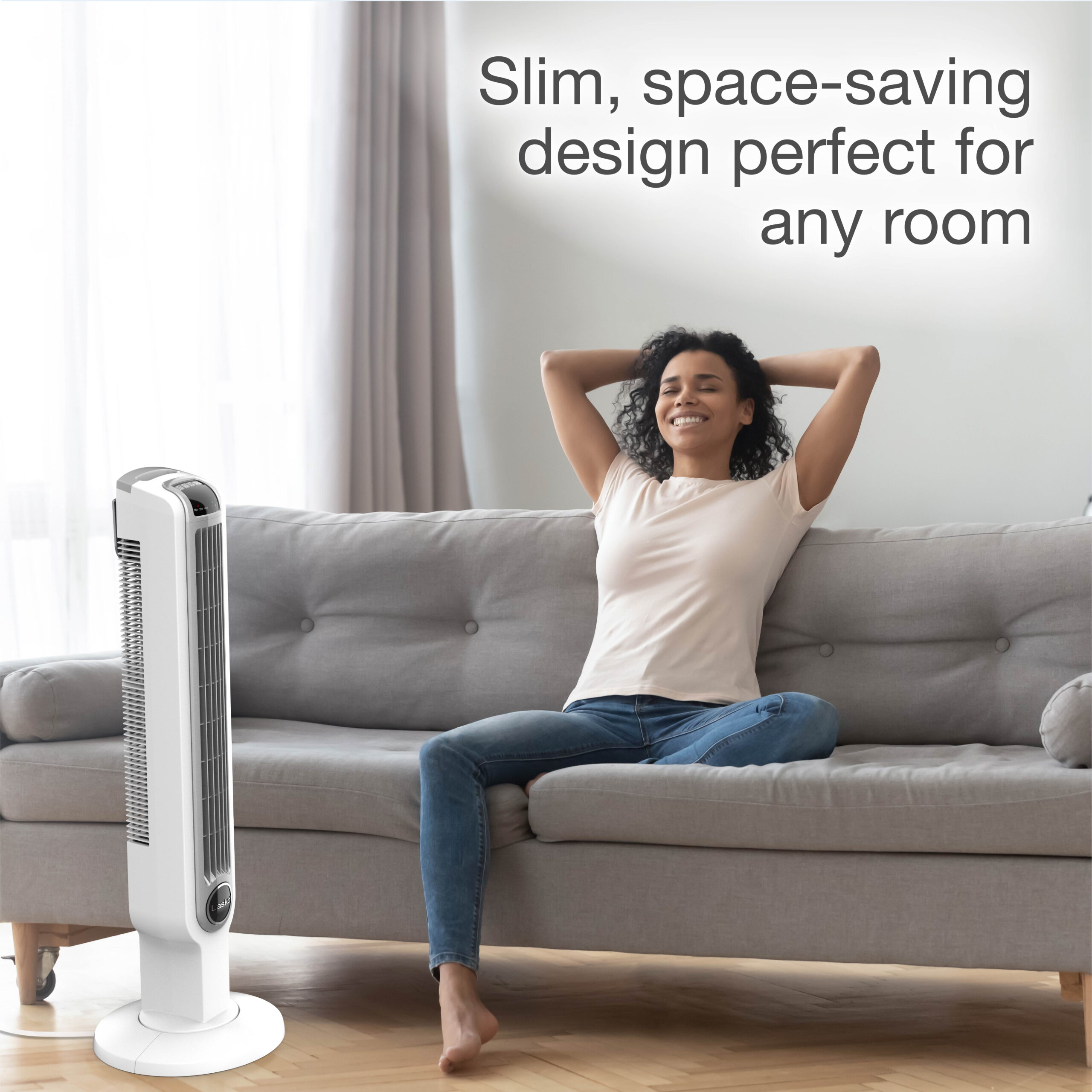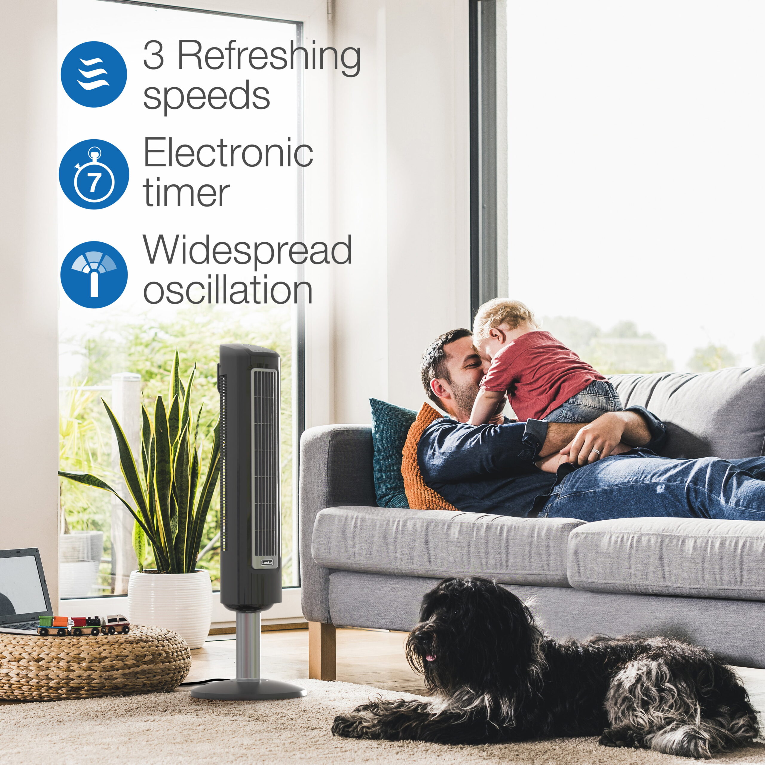 Lasko 38″ Wind Tower 3-Speed Oscillating Tower Fan with Remote and Timer. 2519. Gray