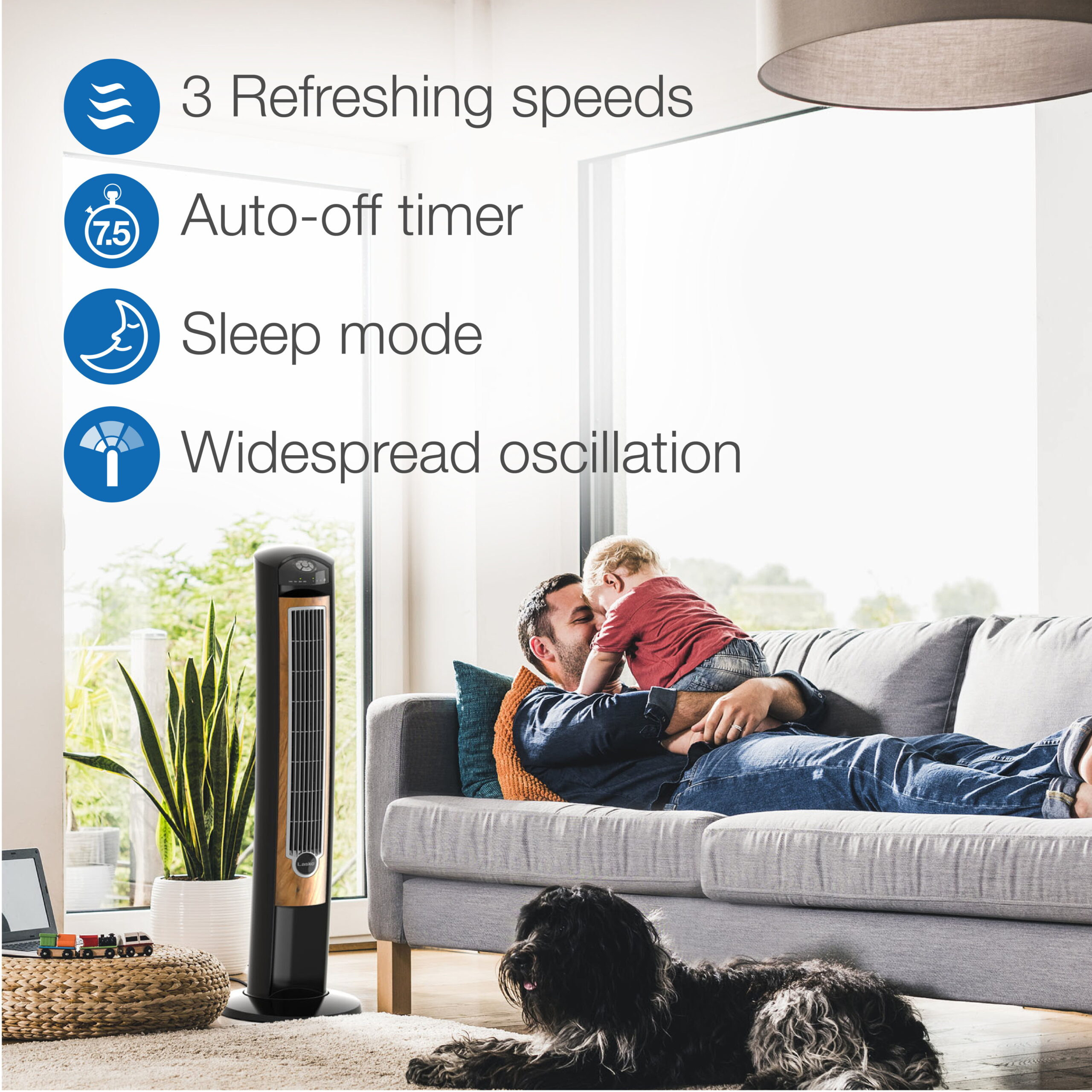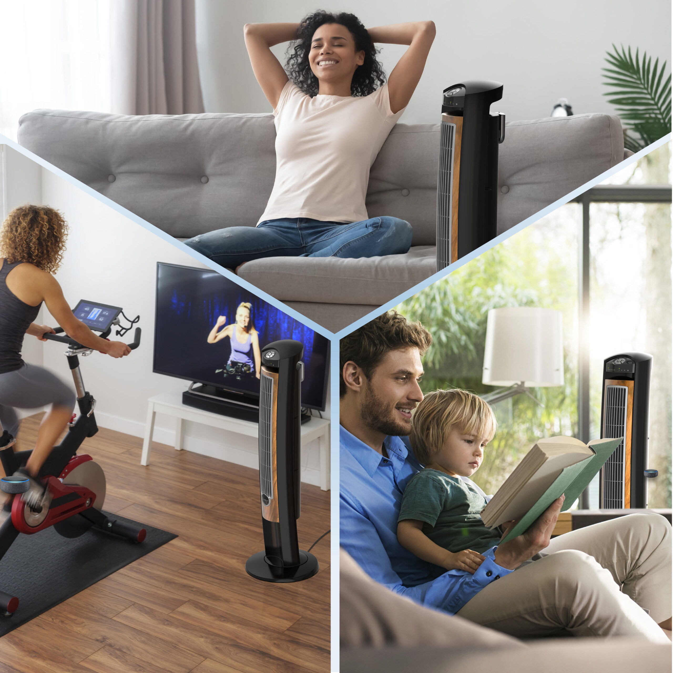 Lasko 42″ Wind Curve Tower Fan with Sleep Mode and Remote Control. T42050. Black/Brown