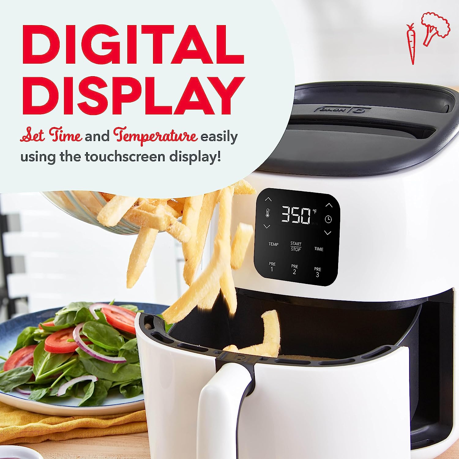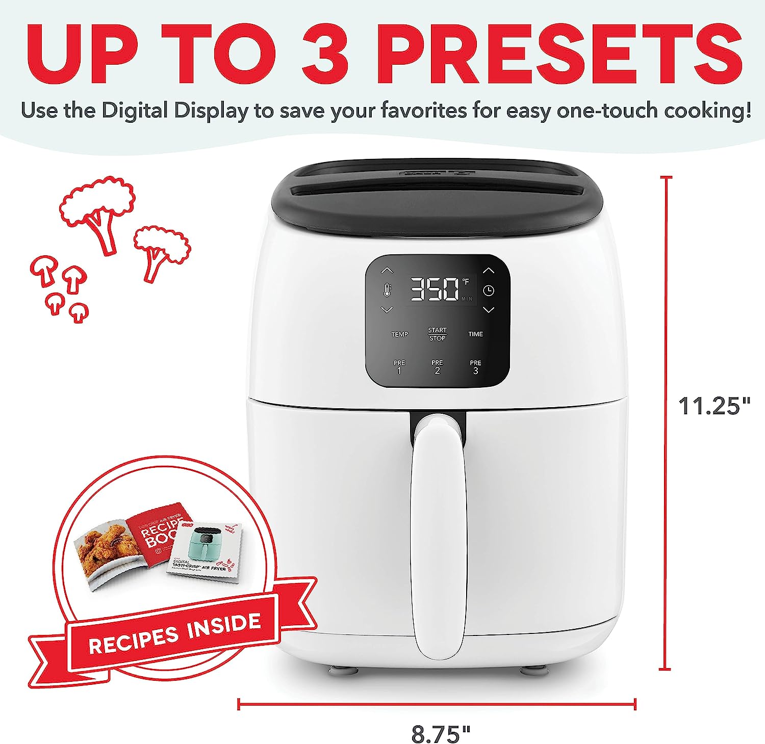 DASH Tasti-Crisp™ Digital Air Fryer with AirCrisp Technology. Custom Presets. Temperature Control. and Auto Shut Off Feature. 2.6 Quart - White