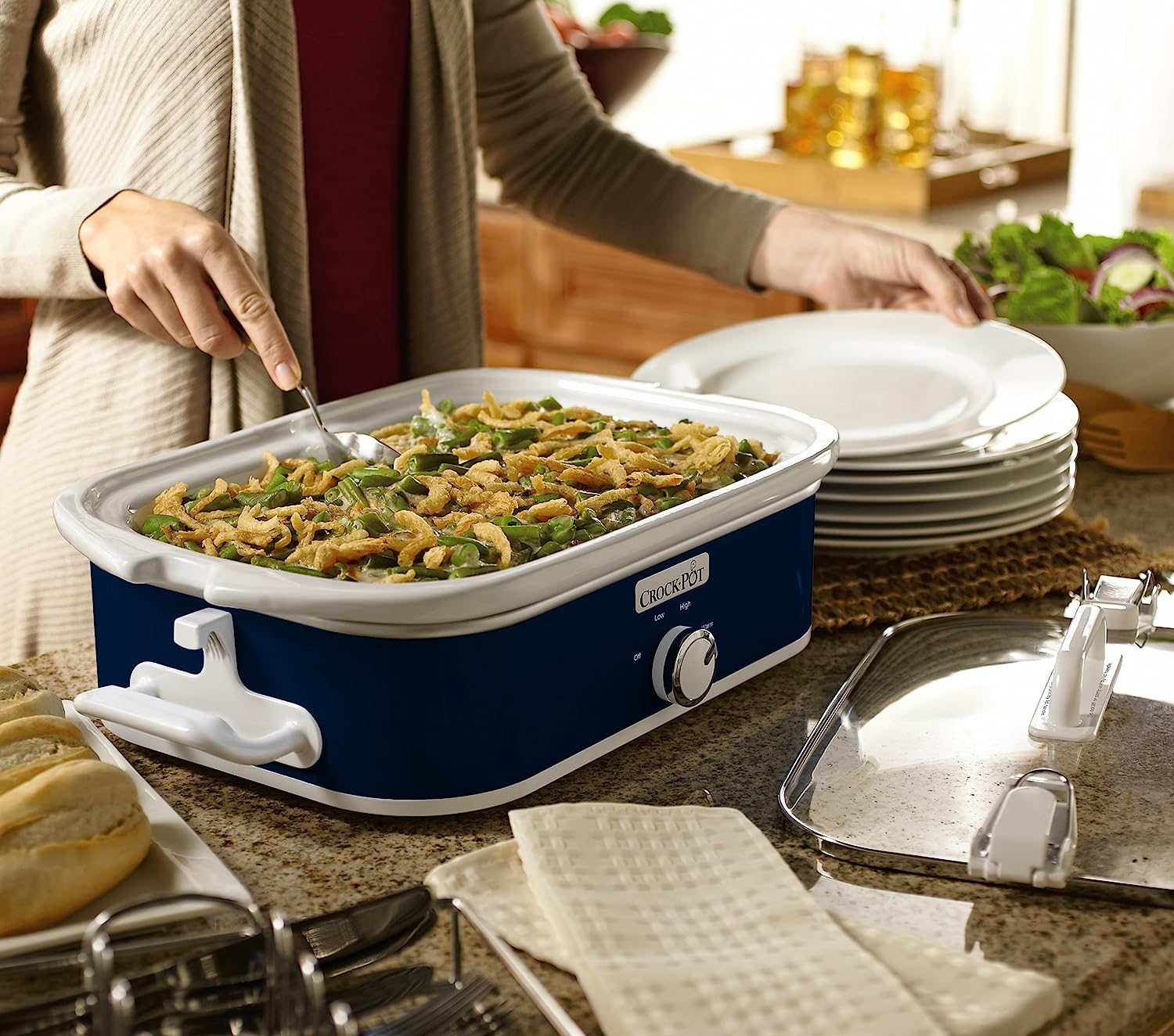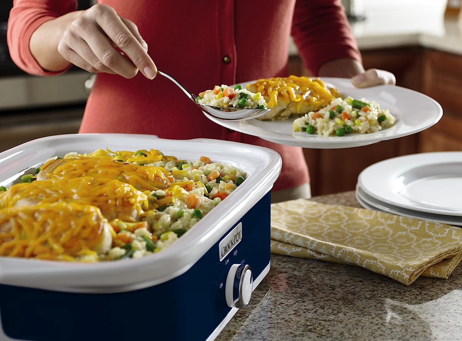 Crock-Pot Small 3.5 Quart Manual Casserole Slow Cooker and Food Warmer. Navy Blue (SCCPCCM350-BL)