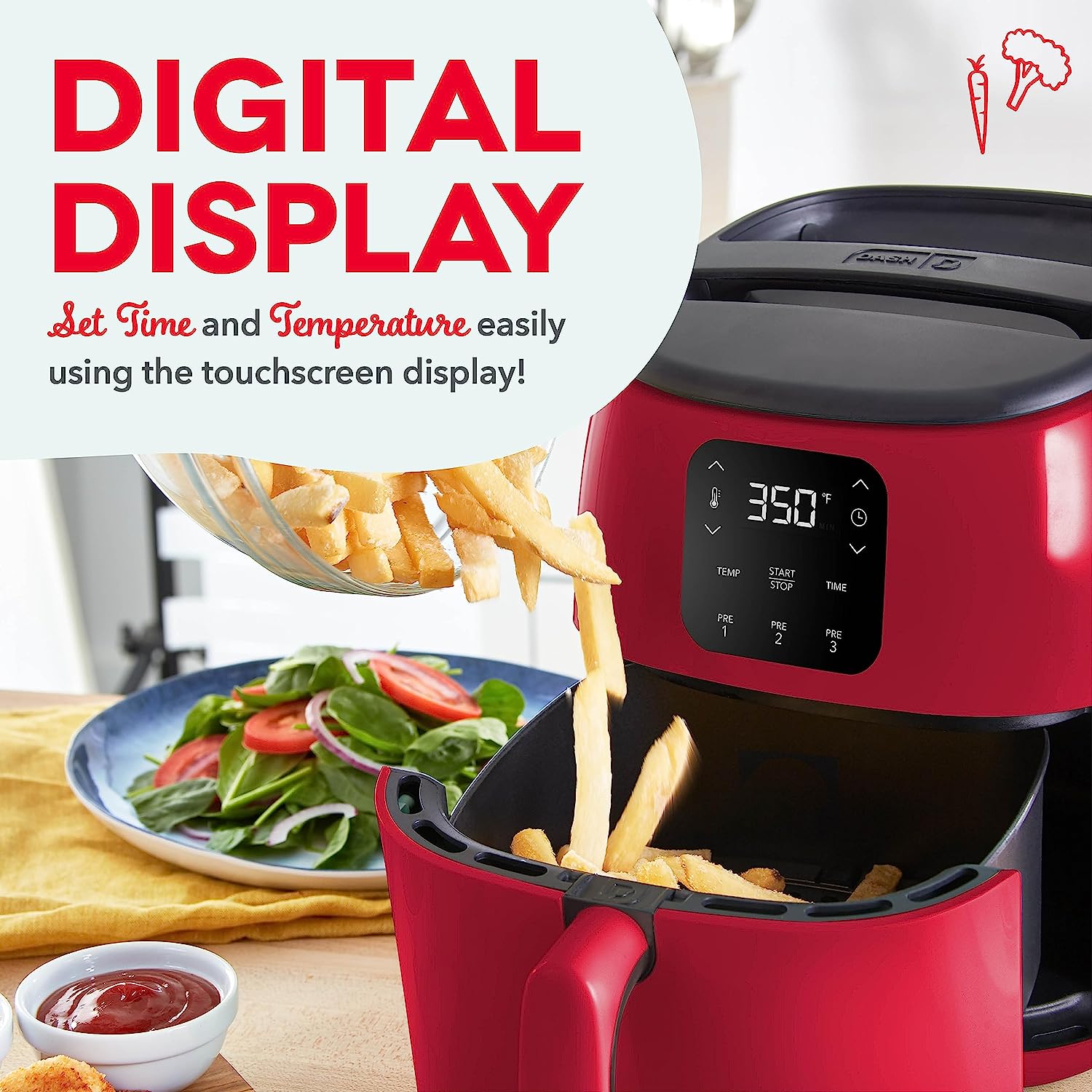 DASH Tasti-Crisp™ Digital Air Fryer with AirCrisp Technology. Custom Presets. Temperature Control. and Auto Shut Off Feature. 2.6 Quart - Red