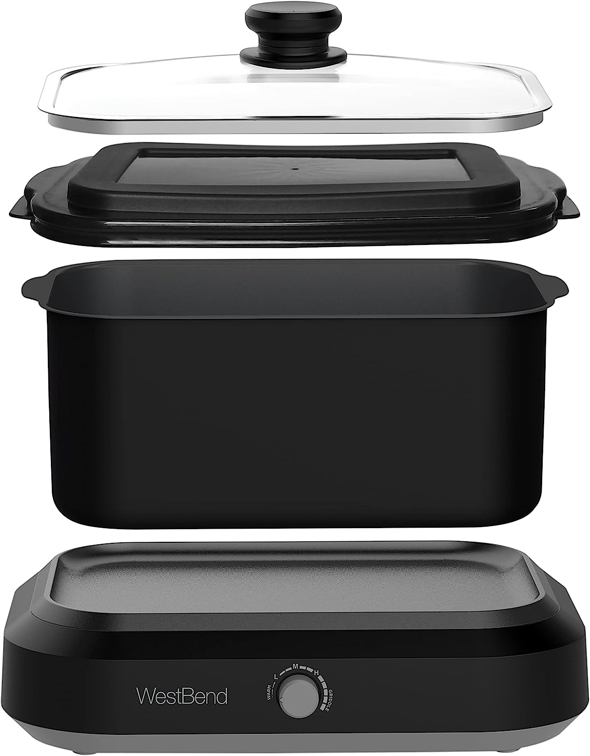 West Bend 87906BK Slow Cooker. Large-Capacity Non-Stick Crockpot with Variable Temperature Control. Travel Lid and Thermal Carrying Case. 6 Qt. Black