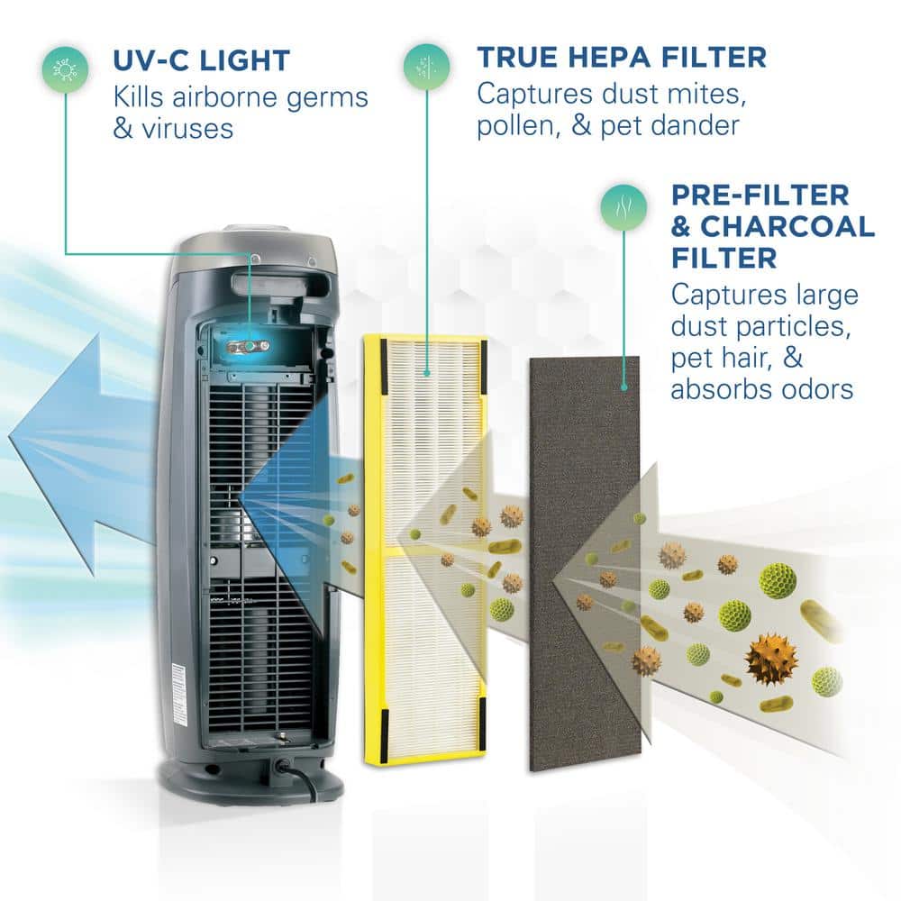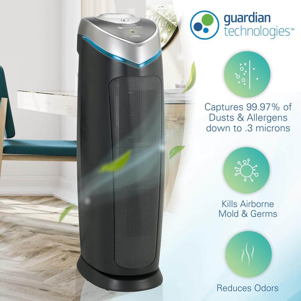 GermGuardian AC4825DLX 22 in. 4-in-1 Air Purifier with True HEPA filter for Medium Rooms up to 153 Sq Ft. Black (Model #AC4825DLX)