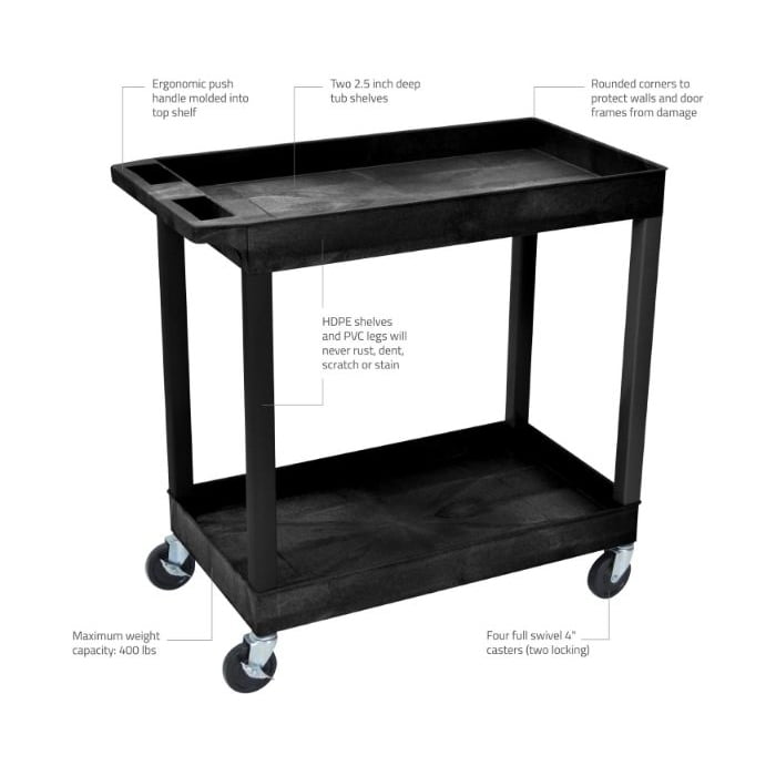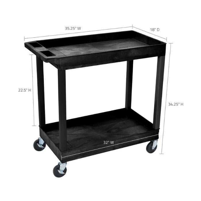 Luxor EC11-B 32″ x 18″ 2-Tub Shelf Black Utility Cart