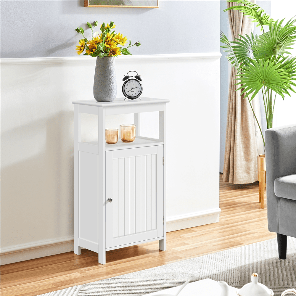 SMILE MART 4-Tier Wooden Bathroom Floor Cabinet for Bathroom Kitchen Hallway. White