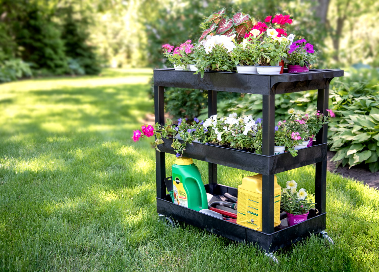 Luxor EC111-B 32″ x 18″ 3 Tub Shelf Utility Cart. Black