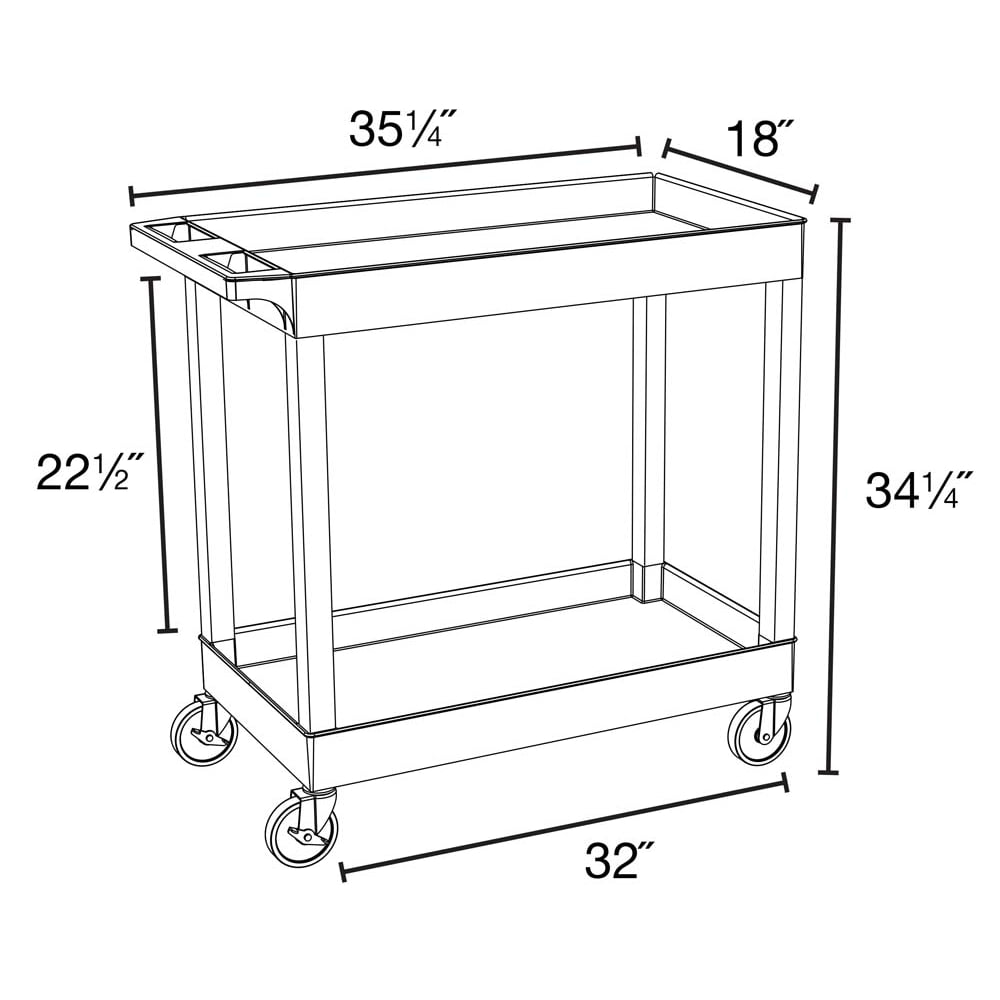 Luxor EC11-G Tub Storage Cart 2 Shelves - Gray . 32″ x 18″