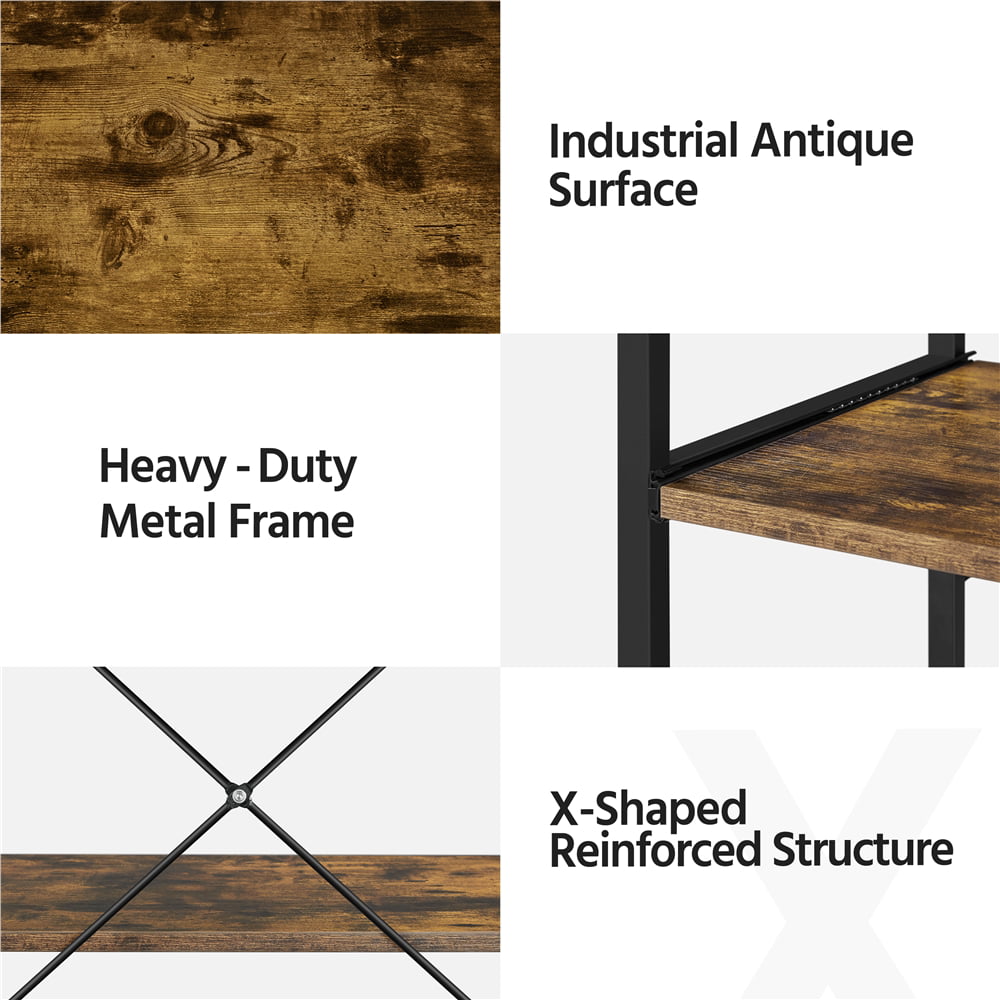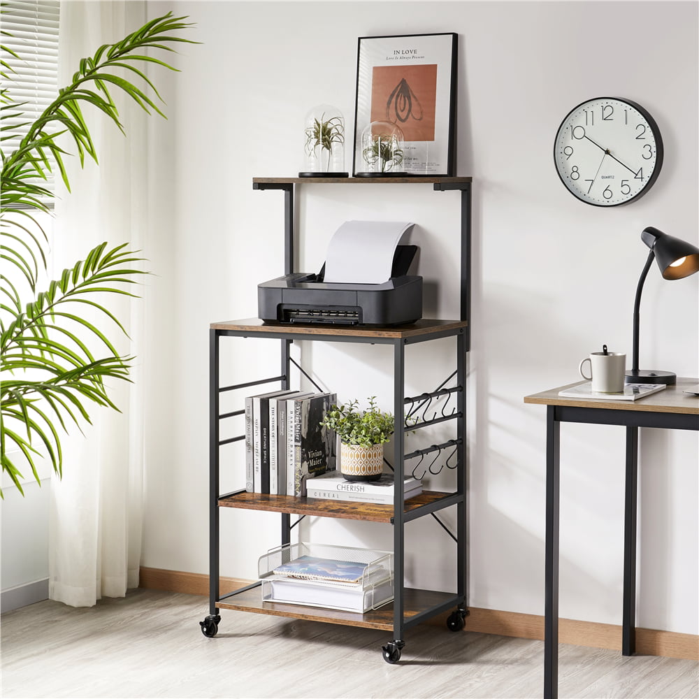 Easyfashion Kitchen Baker-s Rack with Side Hooks. Rustic Brown