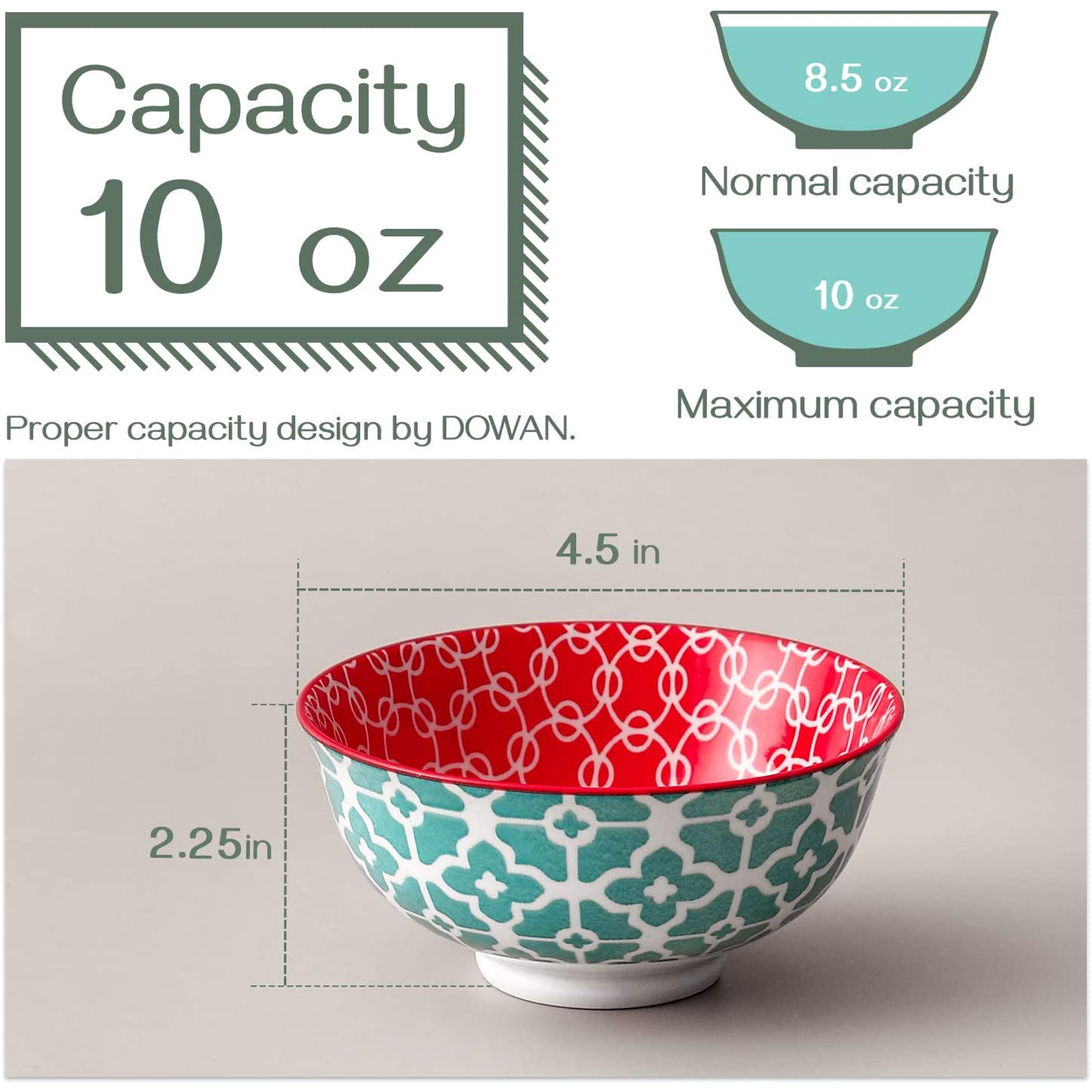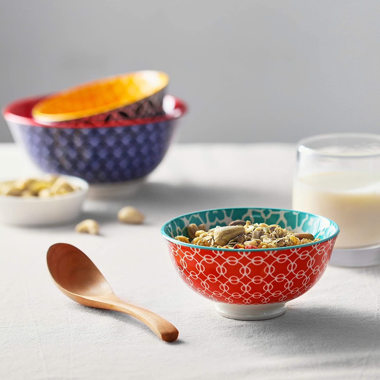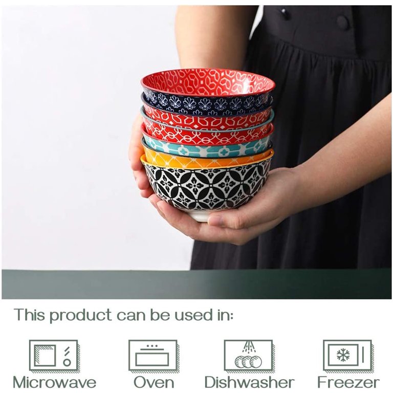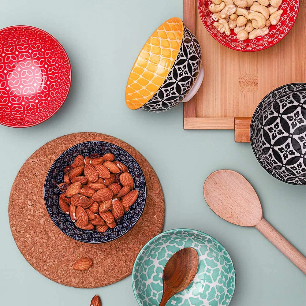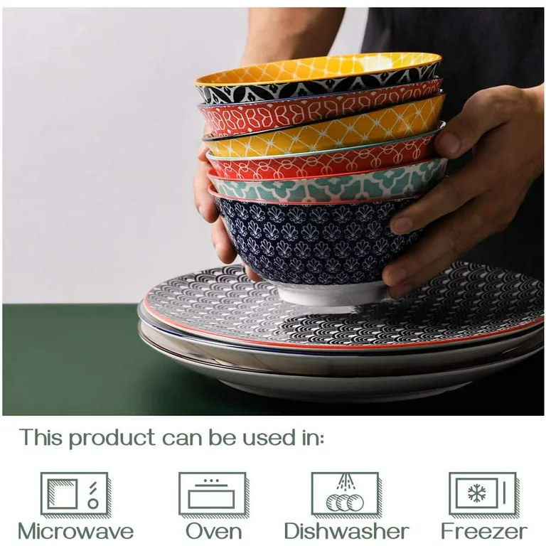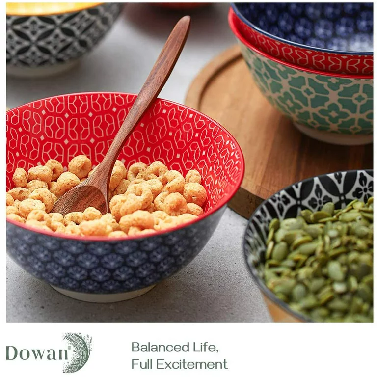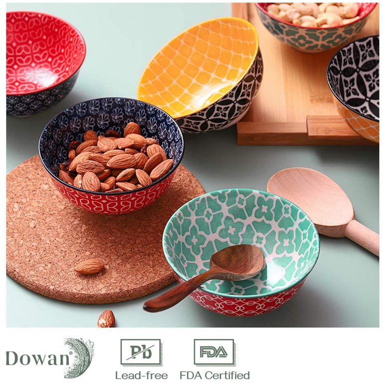 Dowan Ceramic Cereal Bowls. 23 Oz Vibrant Color Bowls. Set of 6