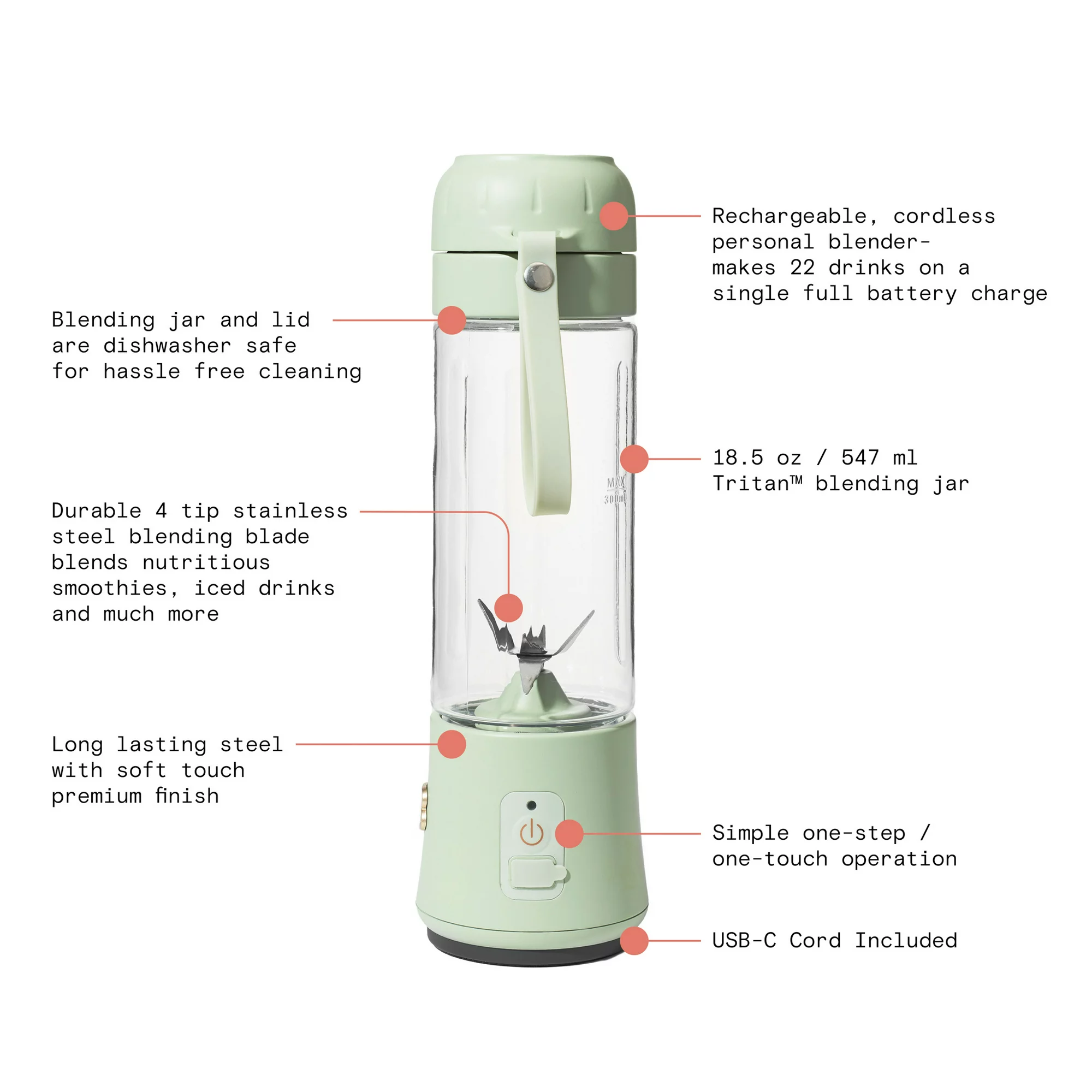 Beautiful Portable Blender by Drew Barrymore. 18.5 oz. Sage Green