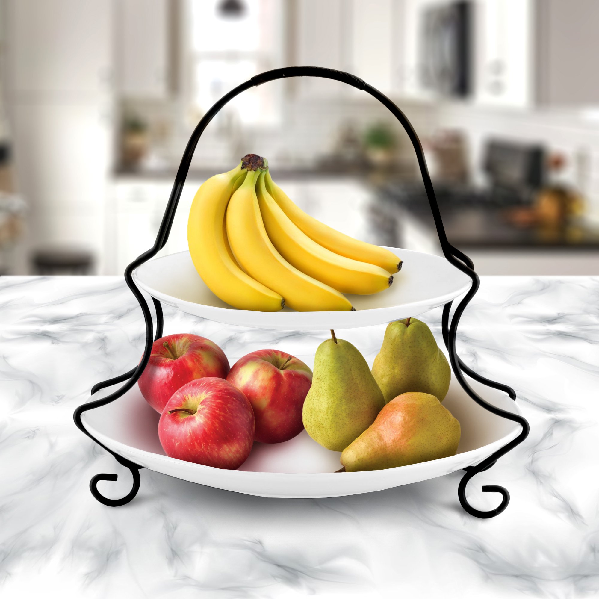 Gibson Elite Gracious Dining 2-Tiered Serving Set with Metal Rack in White