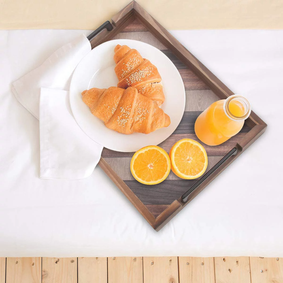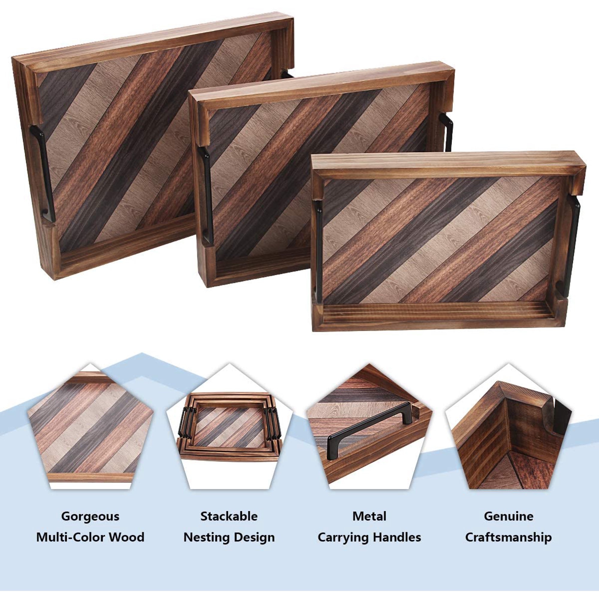 Butizone Wood Serving Tray with Handles. Rustic Decorative. Set of 3