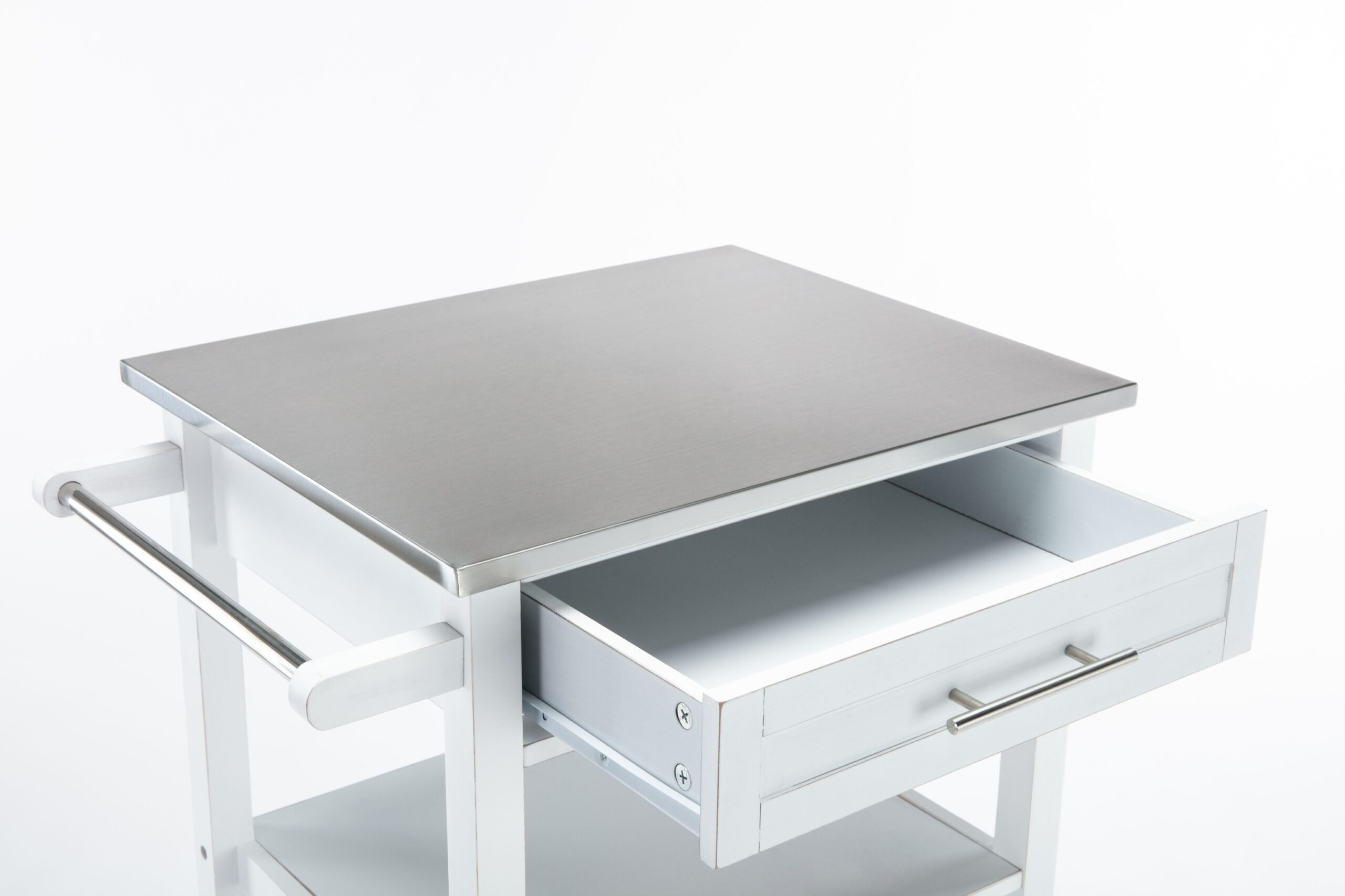Boraam Hennington Kitchen Cart with Stainless Steel Top. White Wash