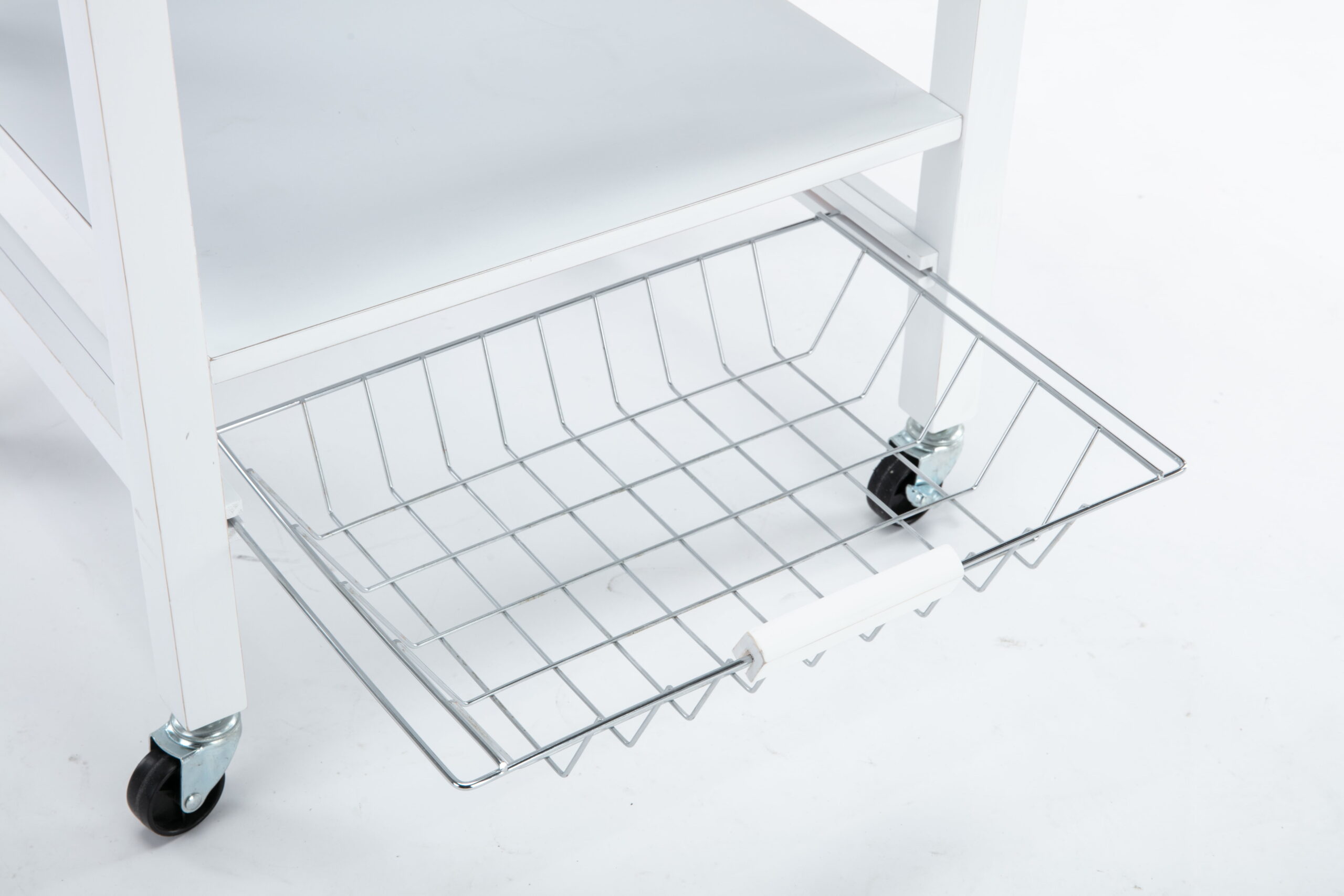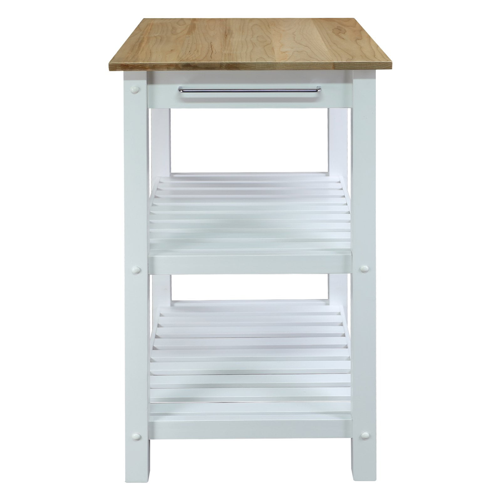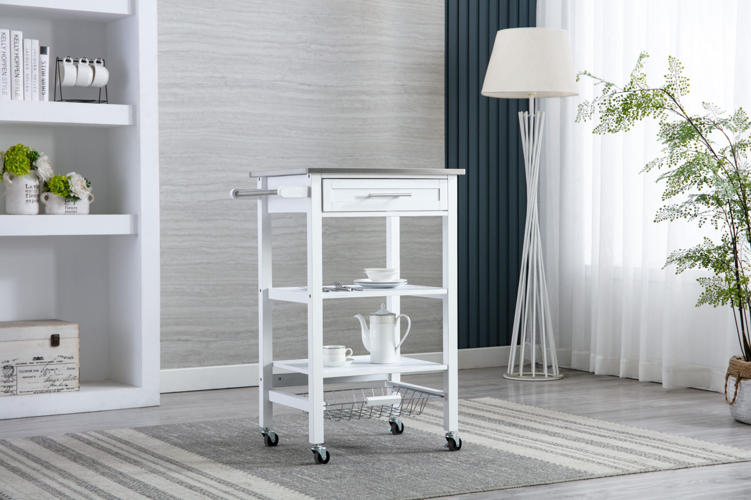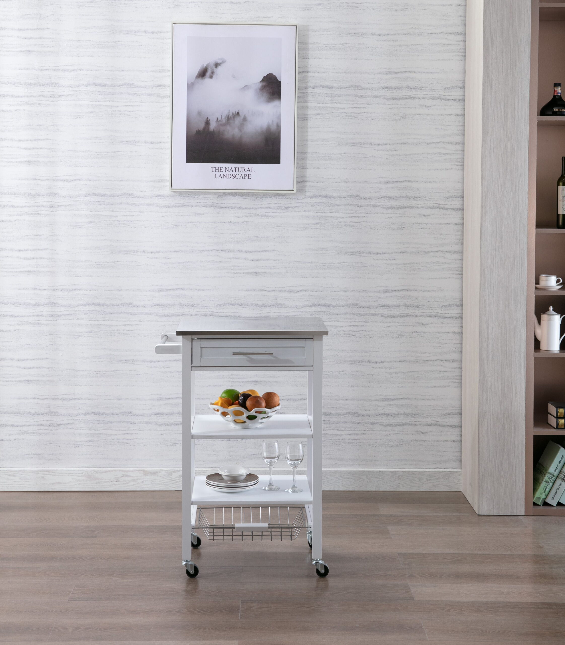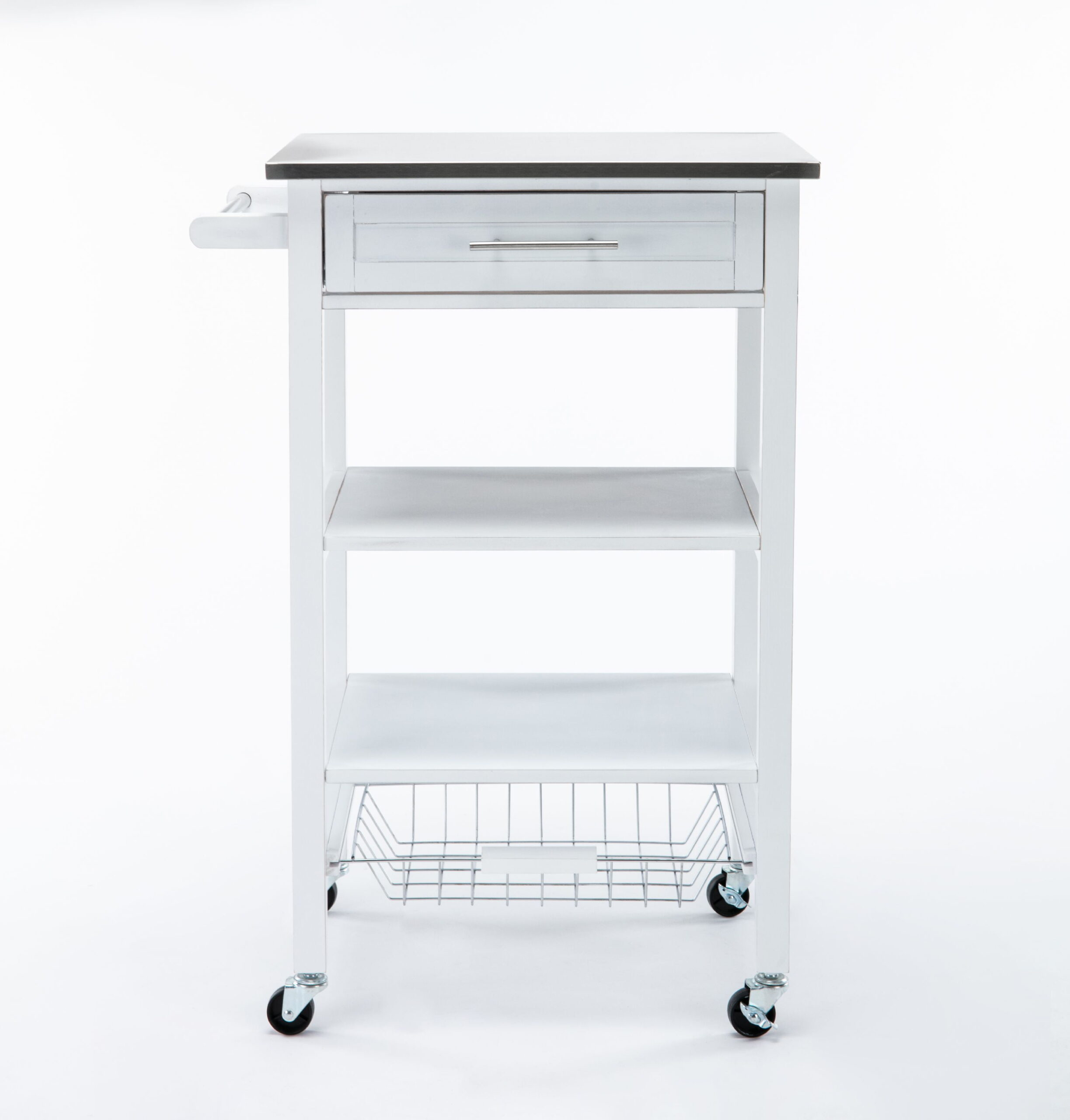 Boraam Holland Wood Kitchen Cart with Stainless Steel Top. White Finish