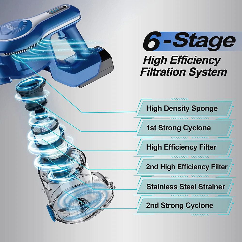 INSE Cordless Vacuum Cleaner. 23Kpa 250W Powerful Suction Stick Vacuum. Up to 45min Runtime 2500mAh Rechargeable Battery. 10-in-1 Lightweight Vacuum for Home Hard Floor Carpet Car Pet Hair
