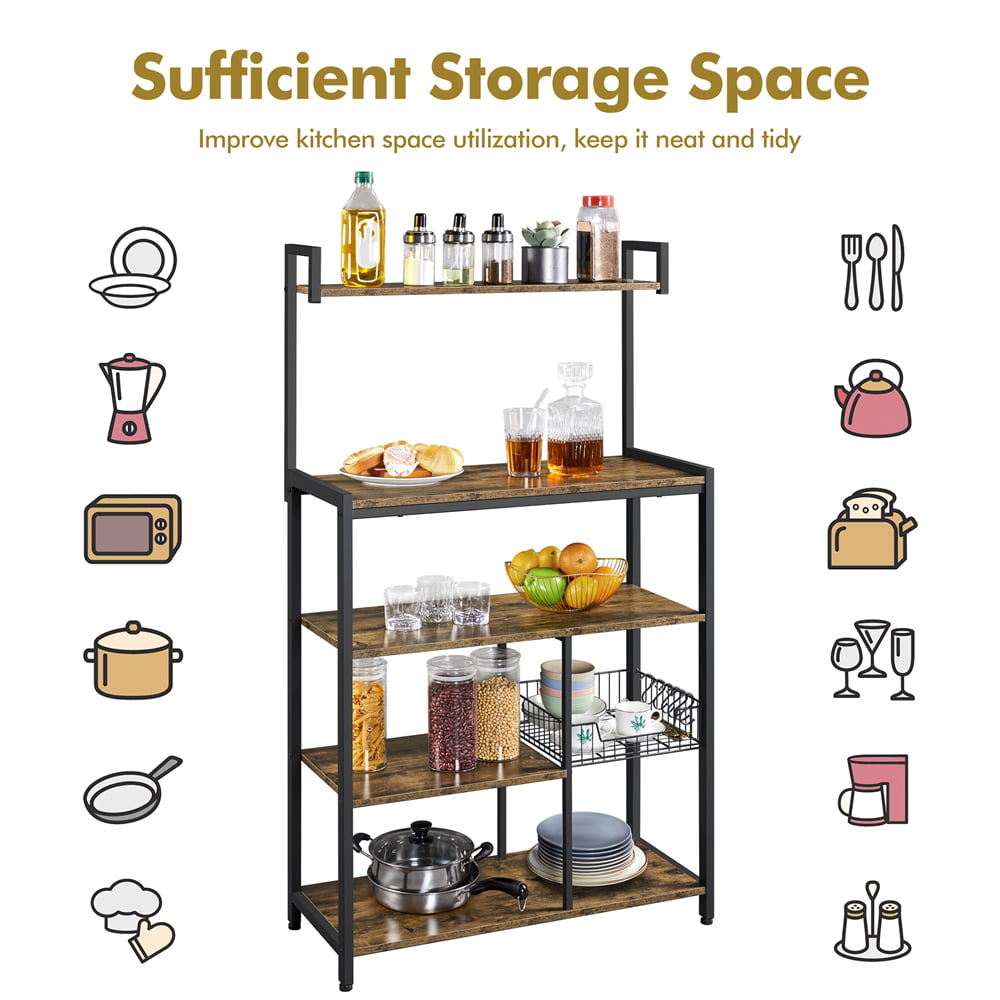 SmileMart Industrial Baker's Rack Utility Storage Shelf for Kitchen. Rustic Brown