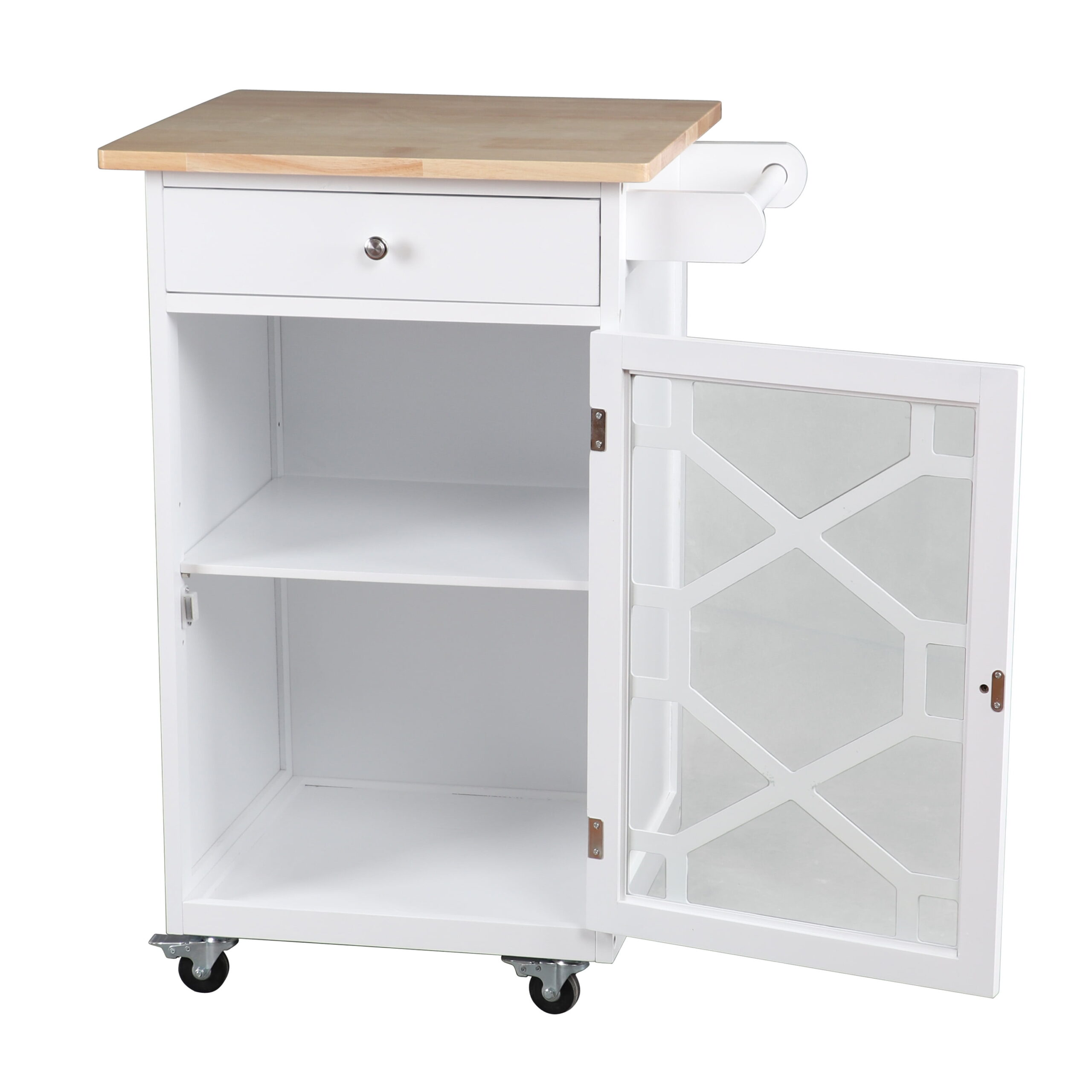 Home Basics Oak Top Rolling Kitchen Trolley with Two Drawers Baskets. White