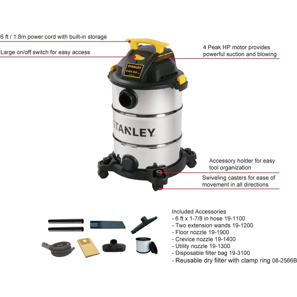 Koblenz 12 Gallon 6 HP Stainless Steel Wet/Dry Shop Vac. 3 in 1 shop vac with 5 Year Warranty (WD-12 L314 SS)