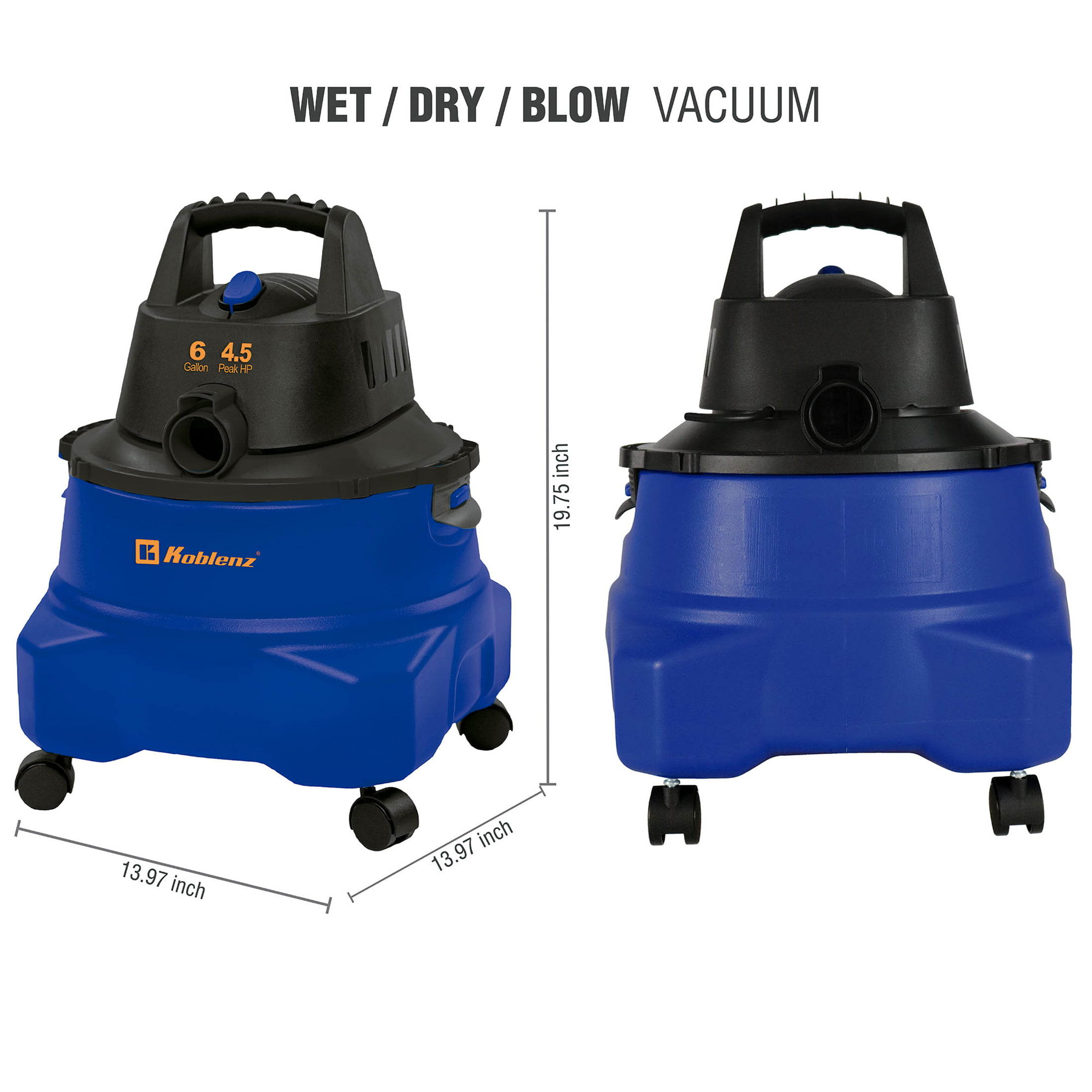 KOBLENZ 6 Gallon Wet Dry Vacuum. 4.5 Peak HP 3 in 1 shop vacuum with blower and 5 Year Warranty (WD 6 L212)