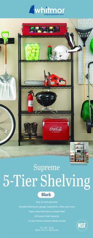Whitmor Adjustable 36″W x 14″D x 72″H 5-Shelf Freestanding Shelves. Metal with Plastic Connectors. Black