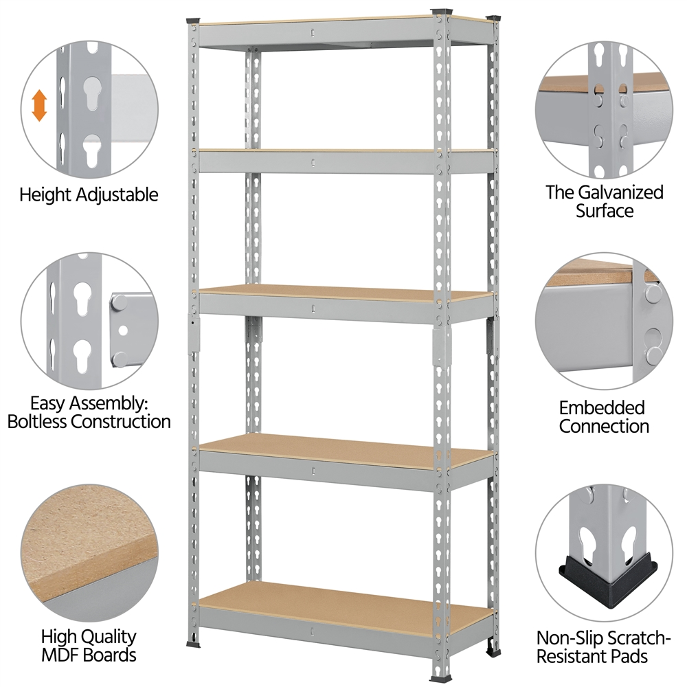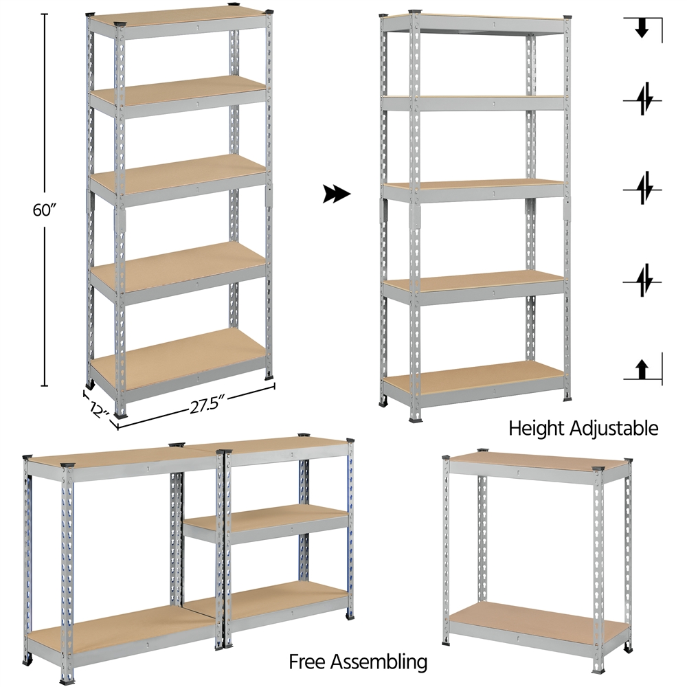 SmileMart Adjustable 12″W x 27.6″D x 59″H 5-Shelf Metal Frame Freestanding Shelves. Light Gray
