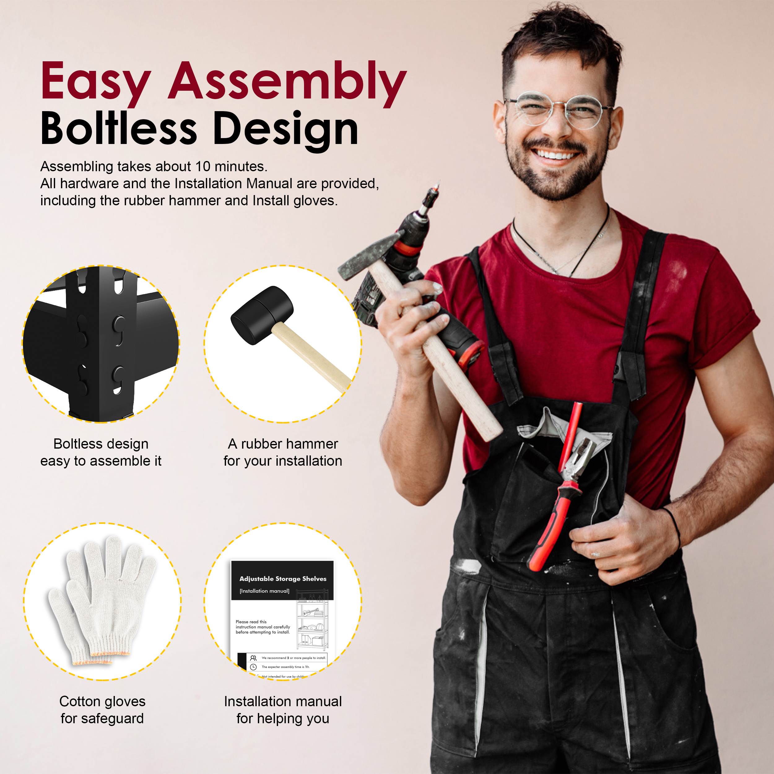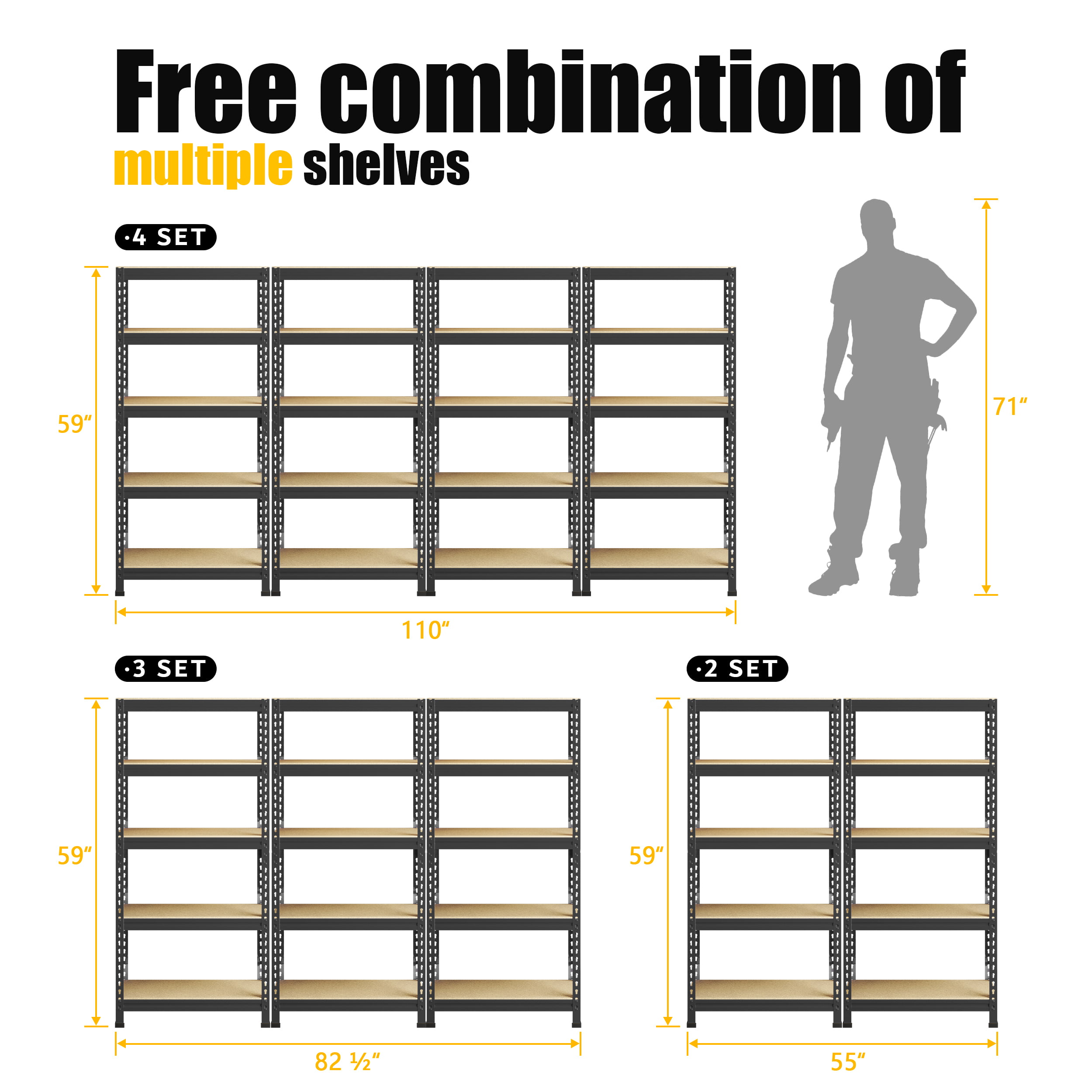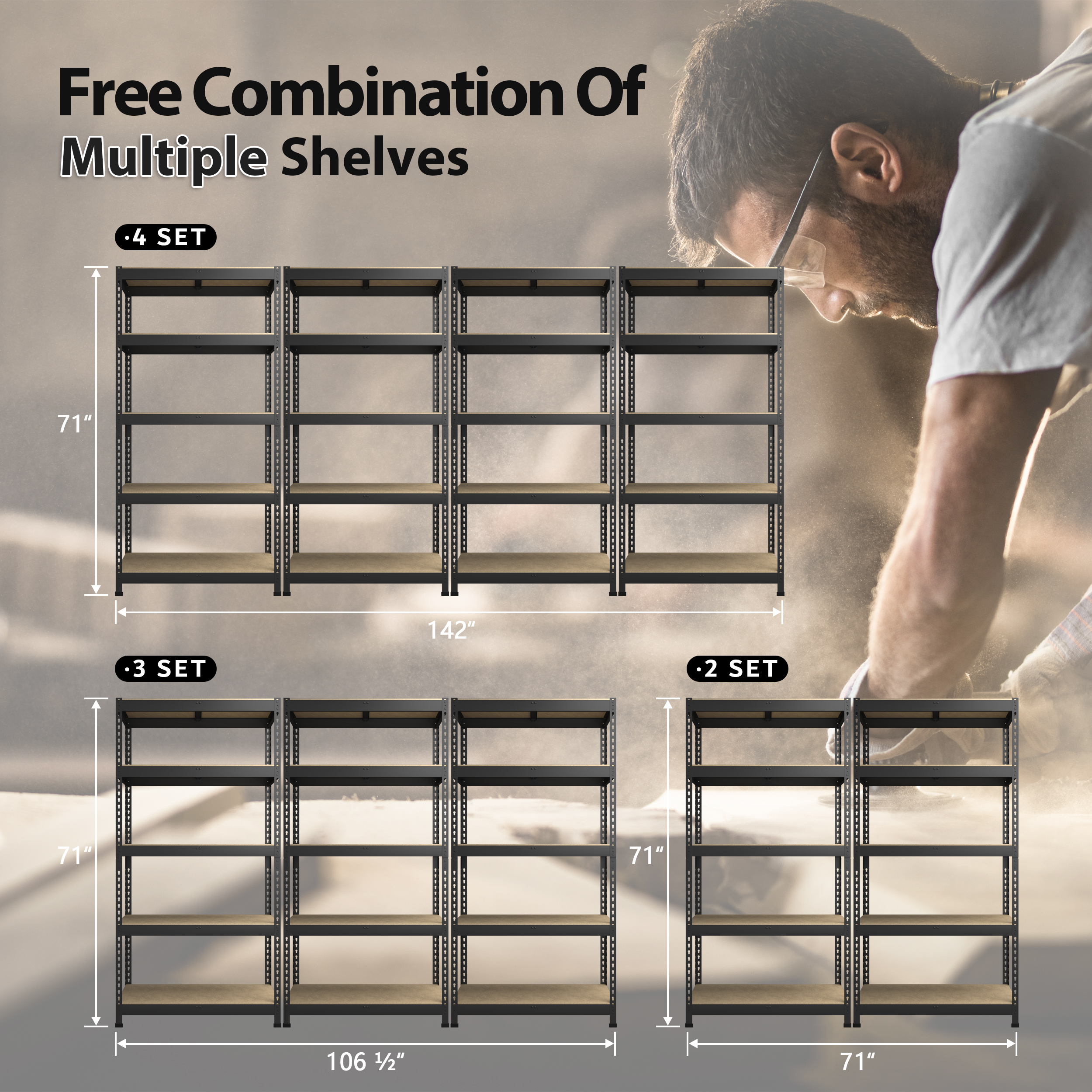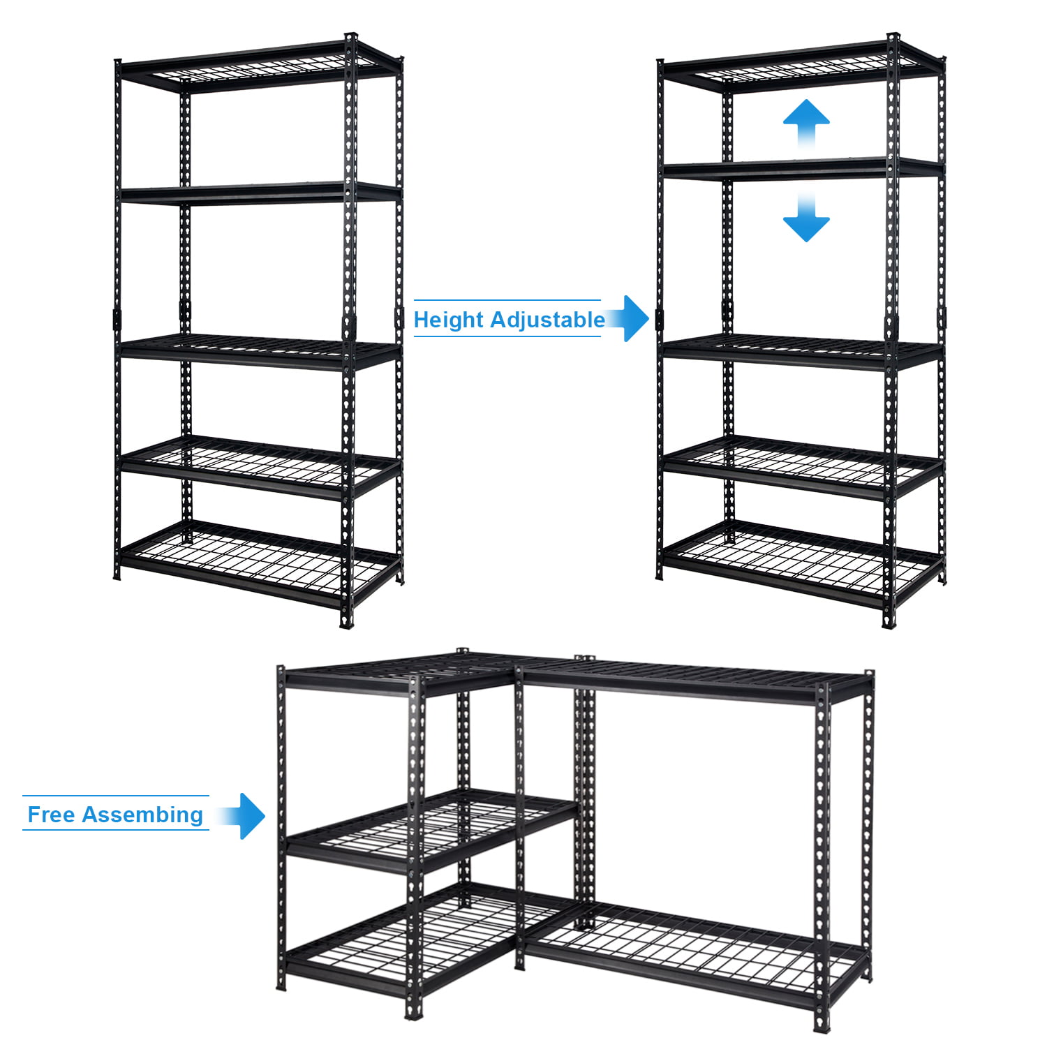 Prilinex 5-Shelf Boltless & Adjustable Steel Storage Shelf for Garage Warehouse.35.5″ x 16″ x 71″.Black