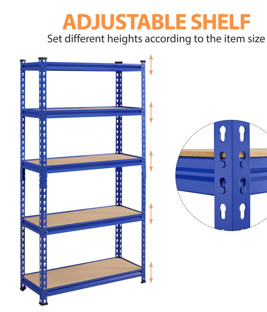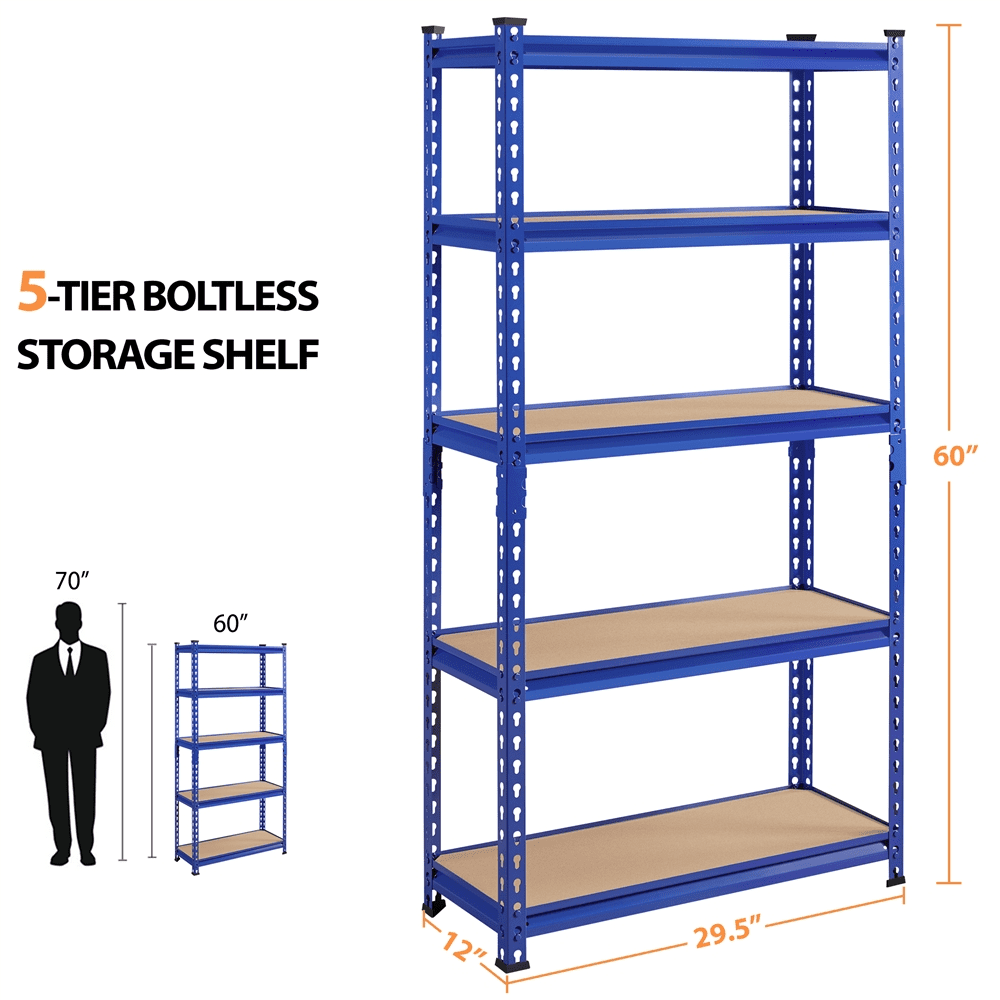 Smile Mart 60″H 5-Tier Adjustable Boltless Storage Shelves Units. Blue