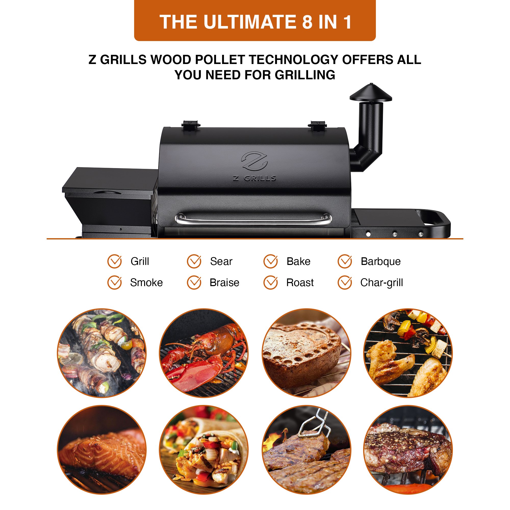 Z GRILLS ZPG-550A 585 sq. in. Wood Pellet Grill and Smoker 8-in-1 BBQ Black