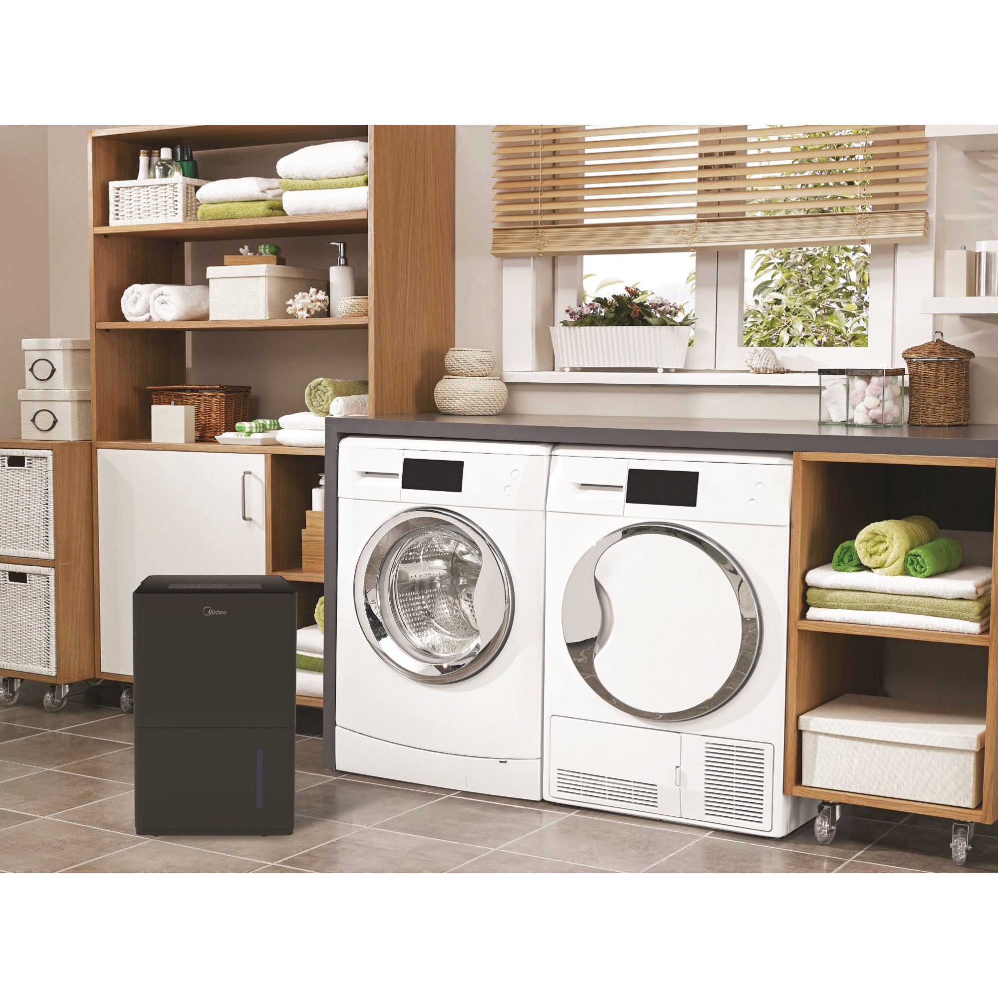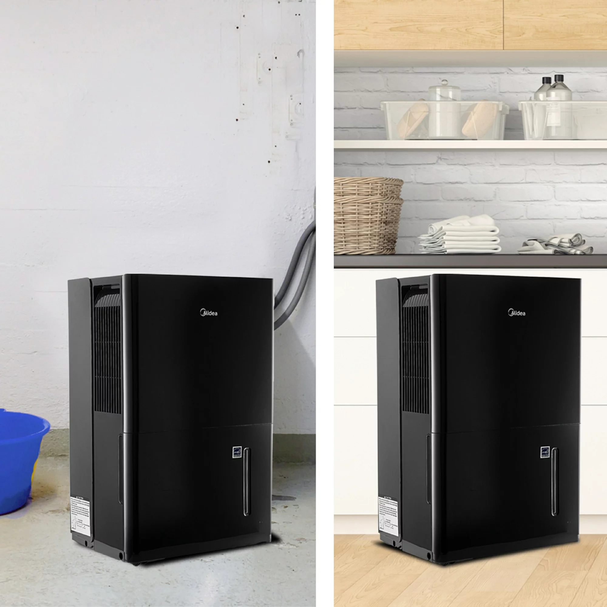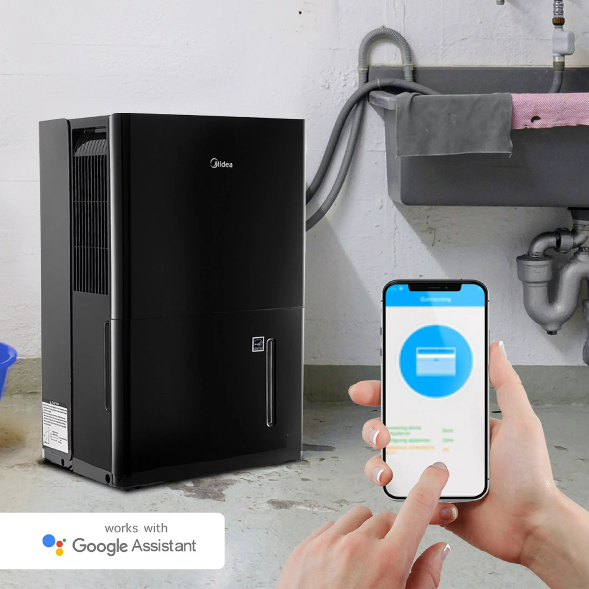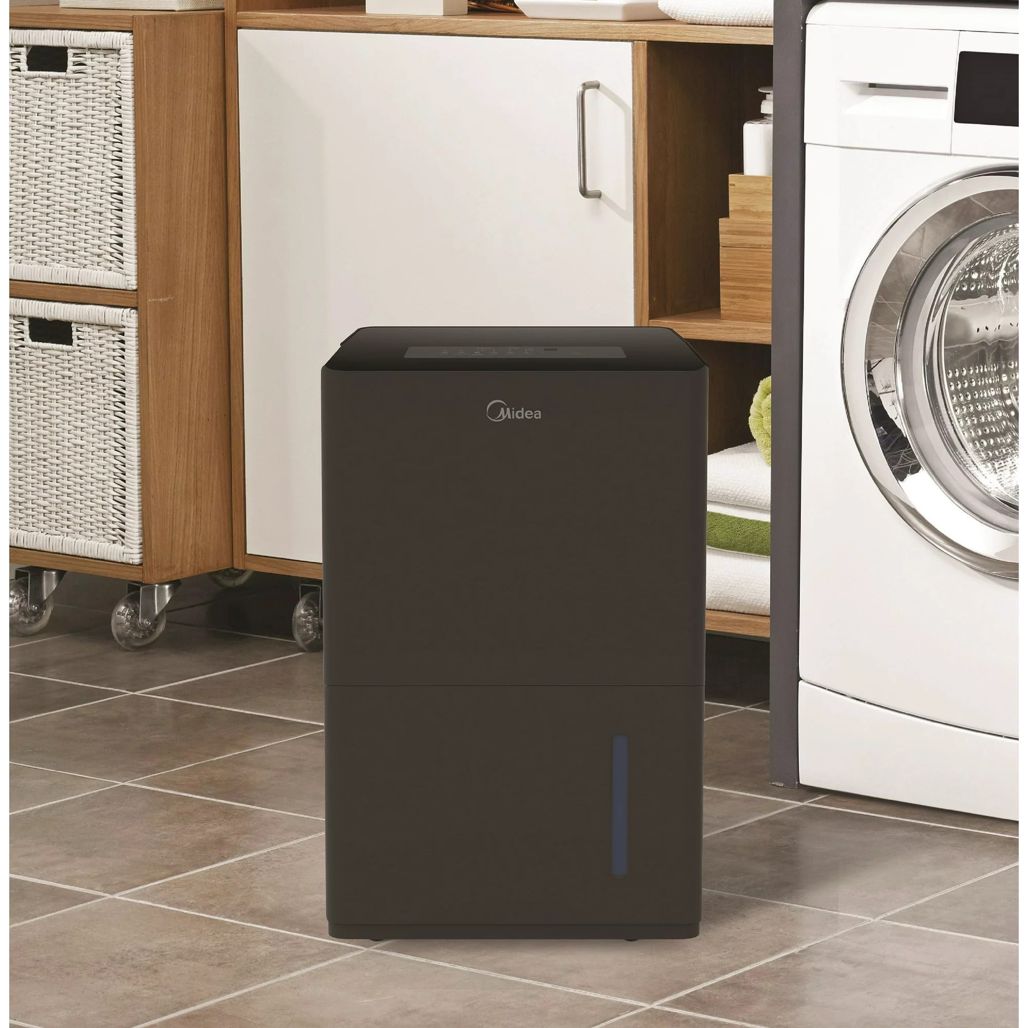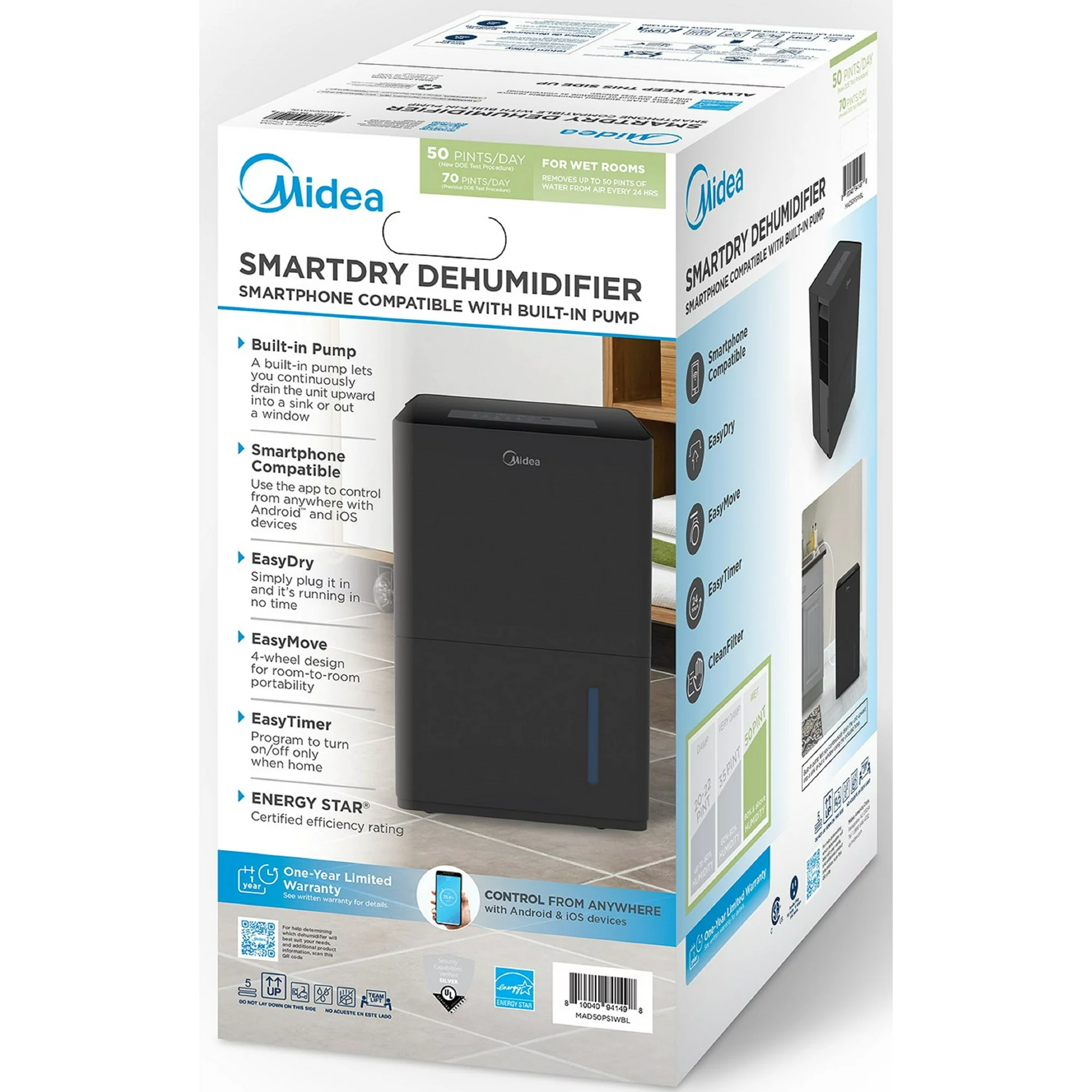 Midea 50-Pint EnergyStar Smart Dehumidifier for Wet Rooms with Pump. Black. MAD50PS1WBL