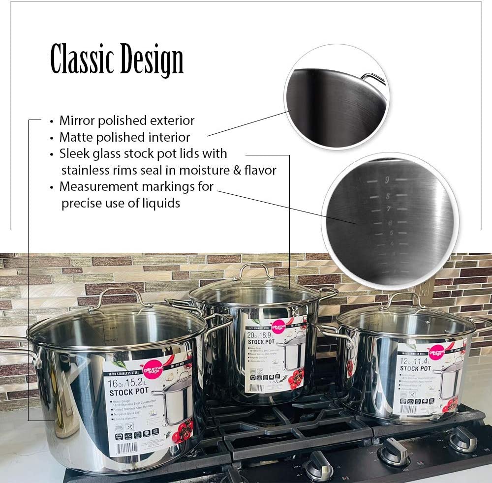 Gourmet Edge 16-Quart Stock Pot - Stainless Steel Soup Pots with Lid as Dishwasher and Oven Safe Cookware. Silver
