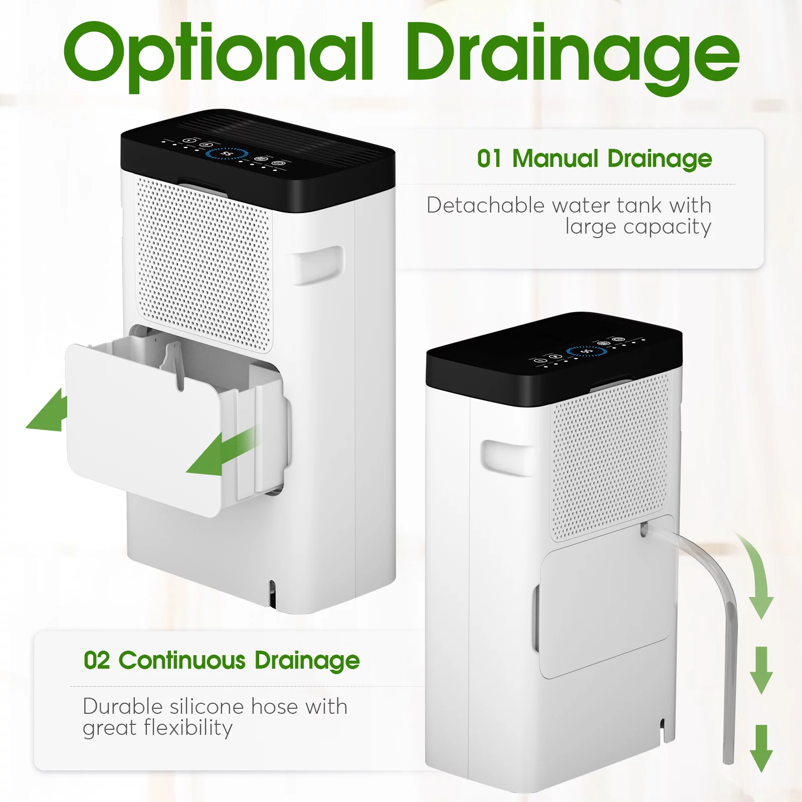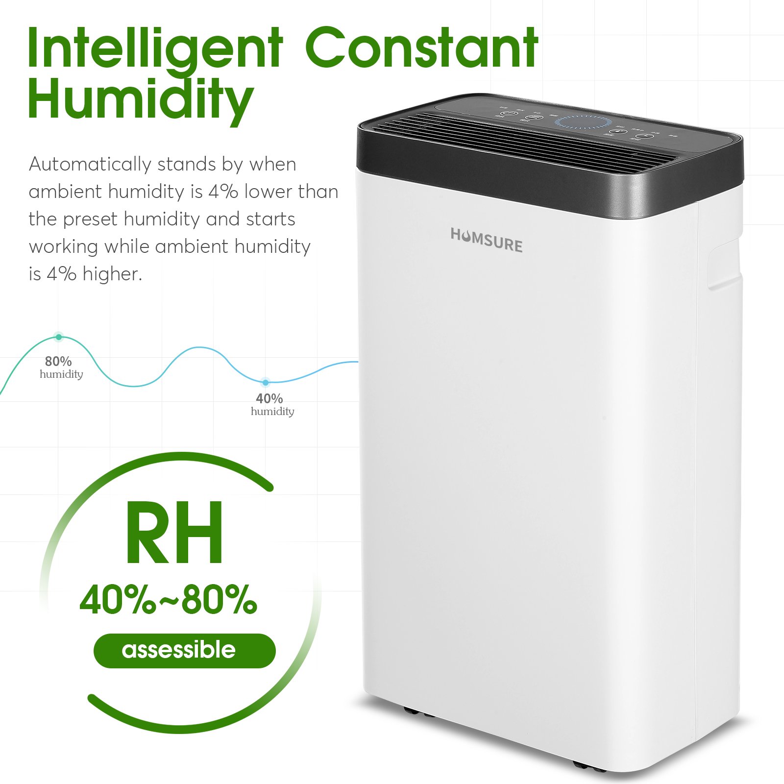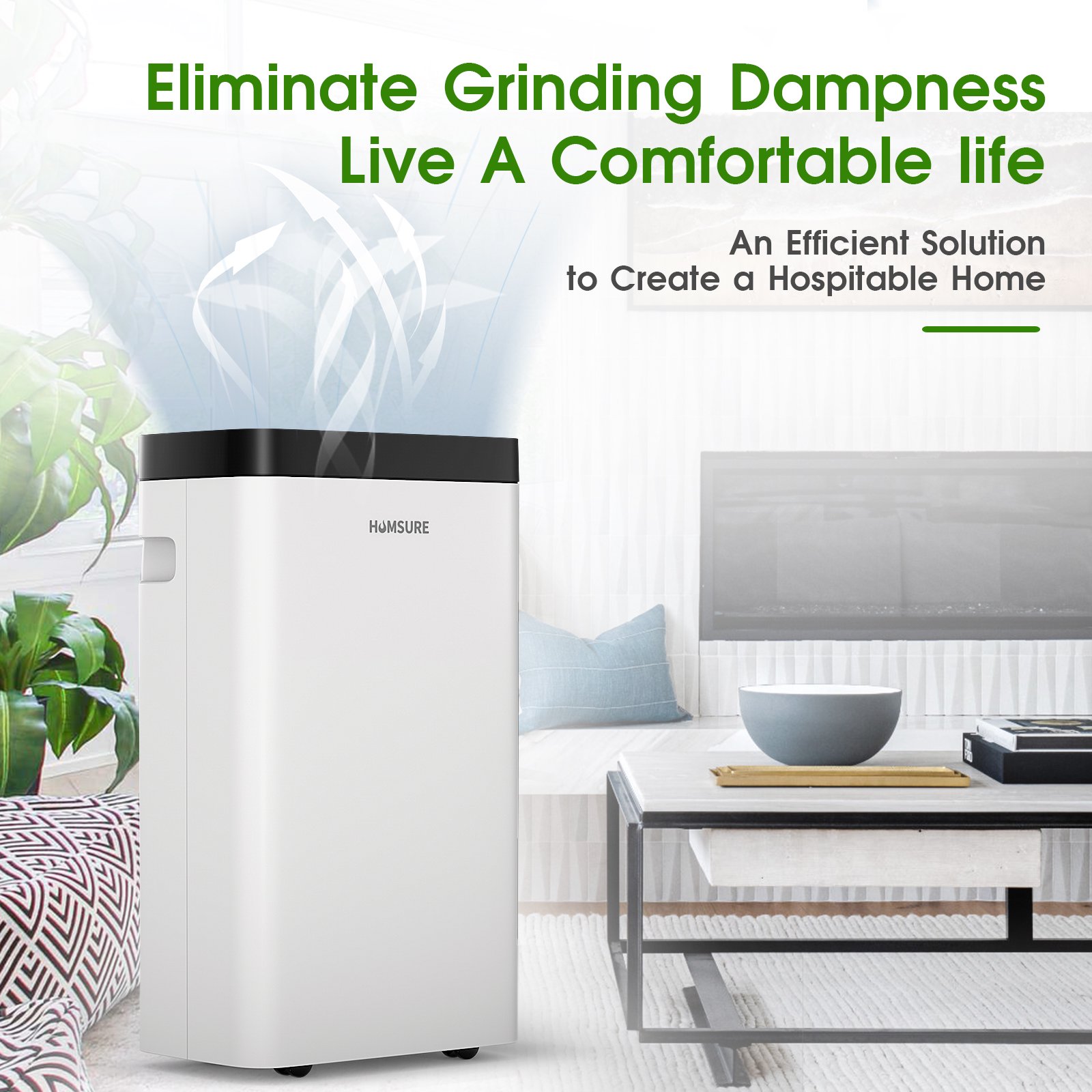 HUMSURE 30 Pints Protable Dehumidifier for Basement and Home with Drain Hose. Spaces up to 1500 Sq Ft