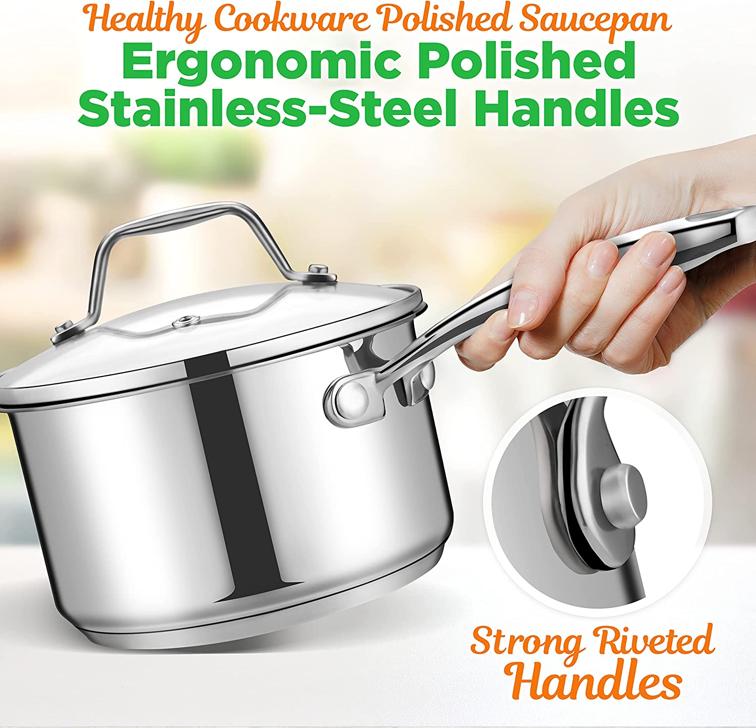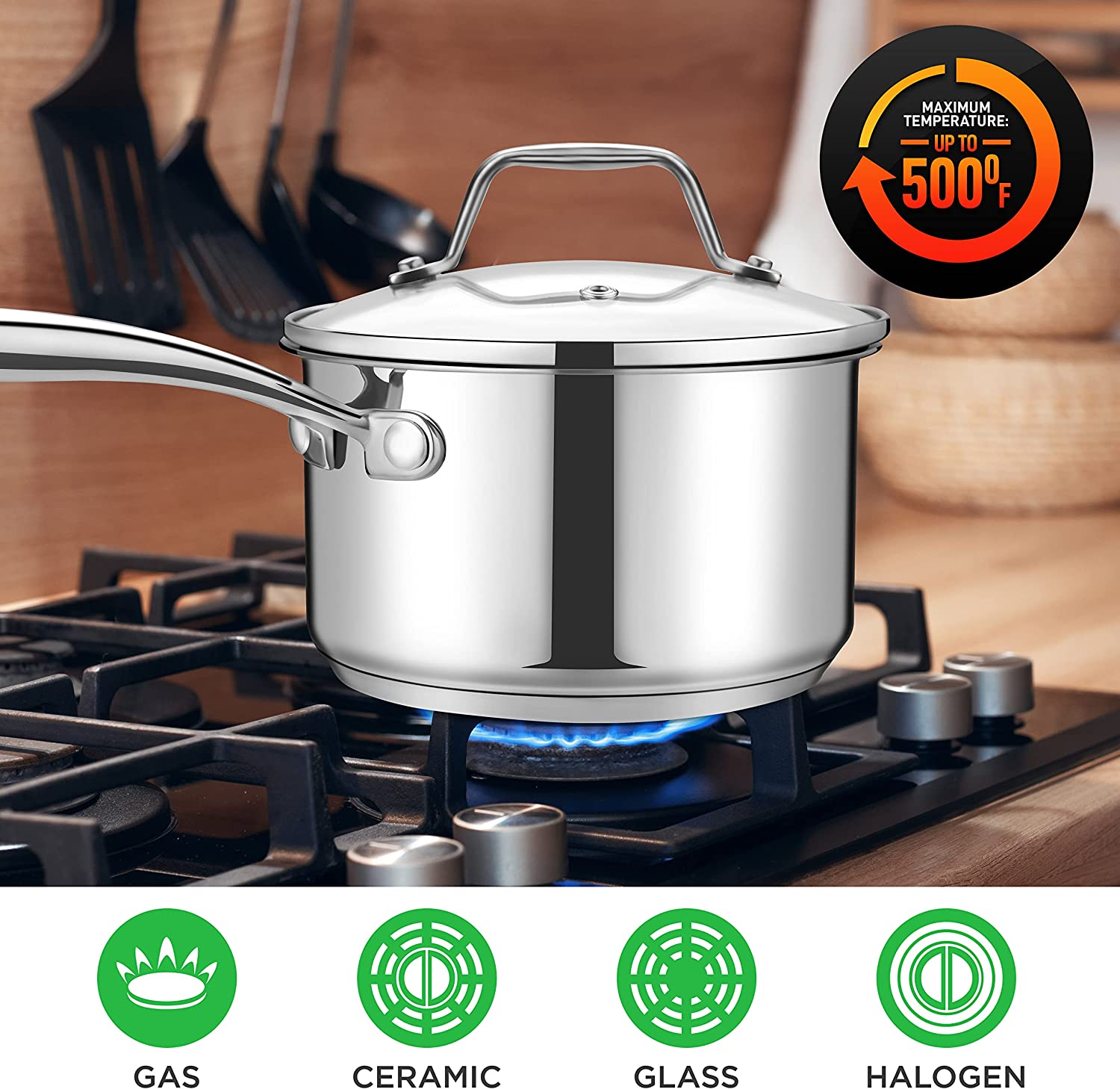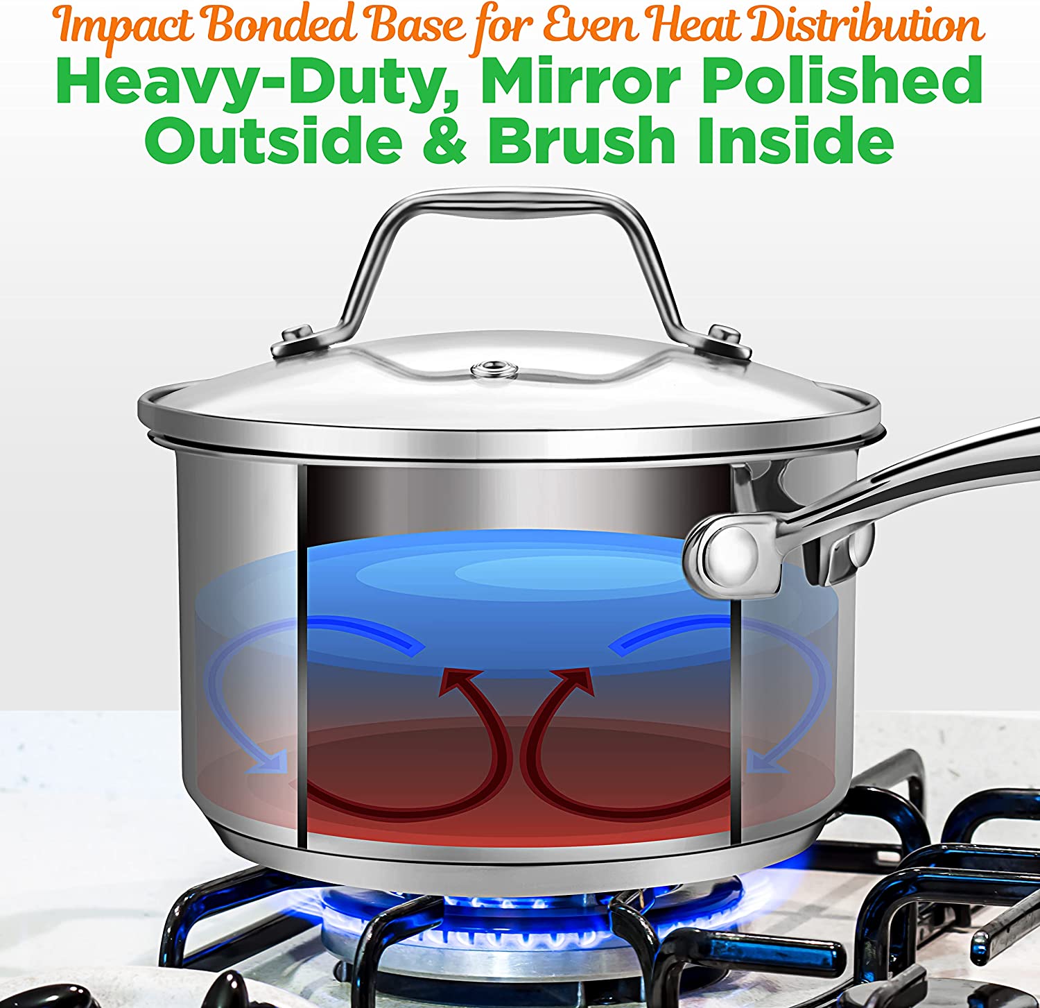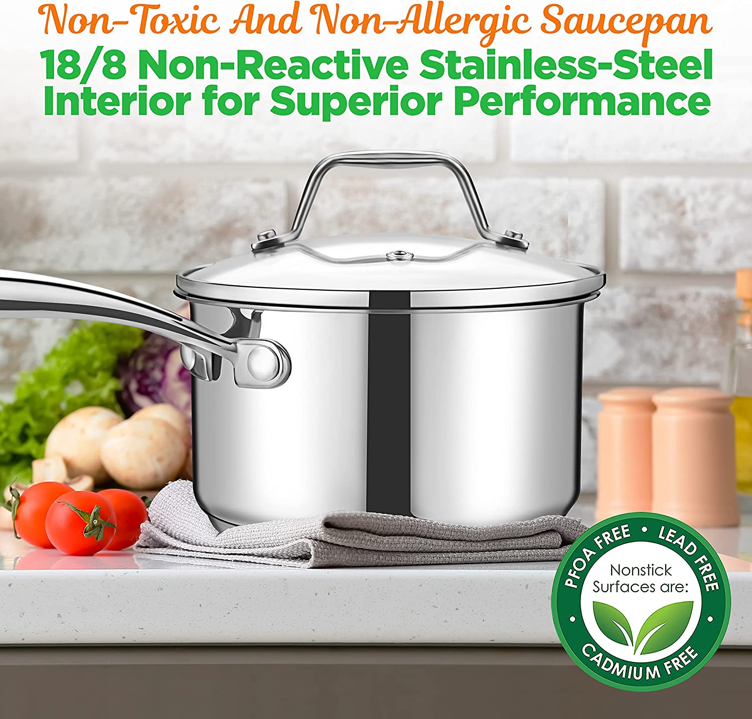 NutriChef 2-Quart Stainless Steel Saucepan - 18/8 Food Grade Heavy Duty Cookware. Sauce Pot. Stew Pot. Simmering Pot Kitchenware w/ See Through Lid. Dishwasher Safe. For Induction Gas Ceramic Cooktops