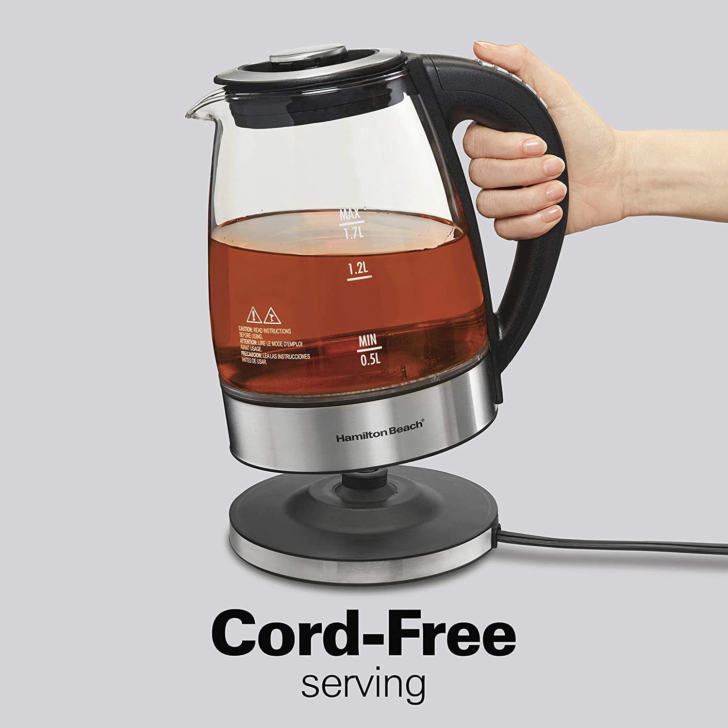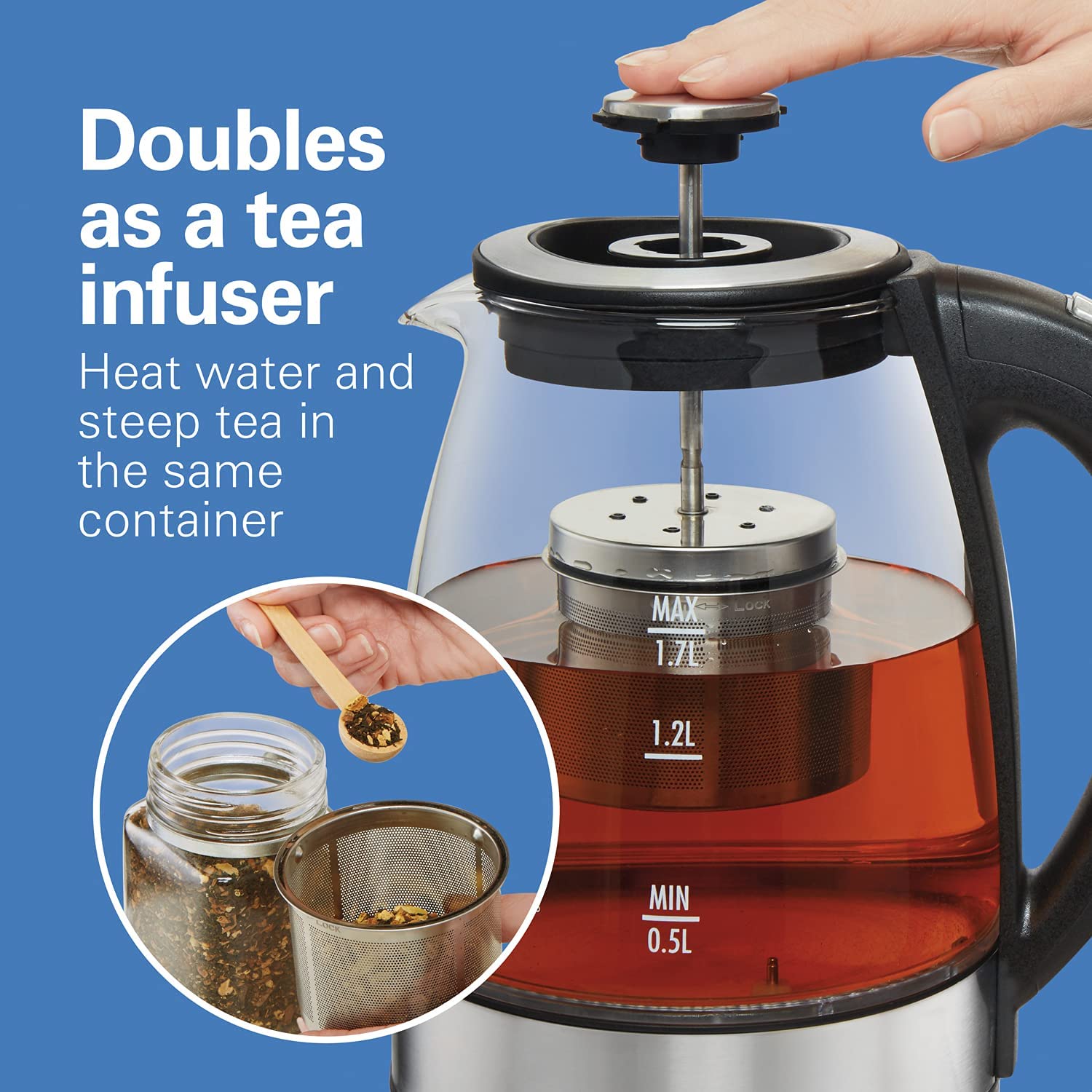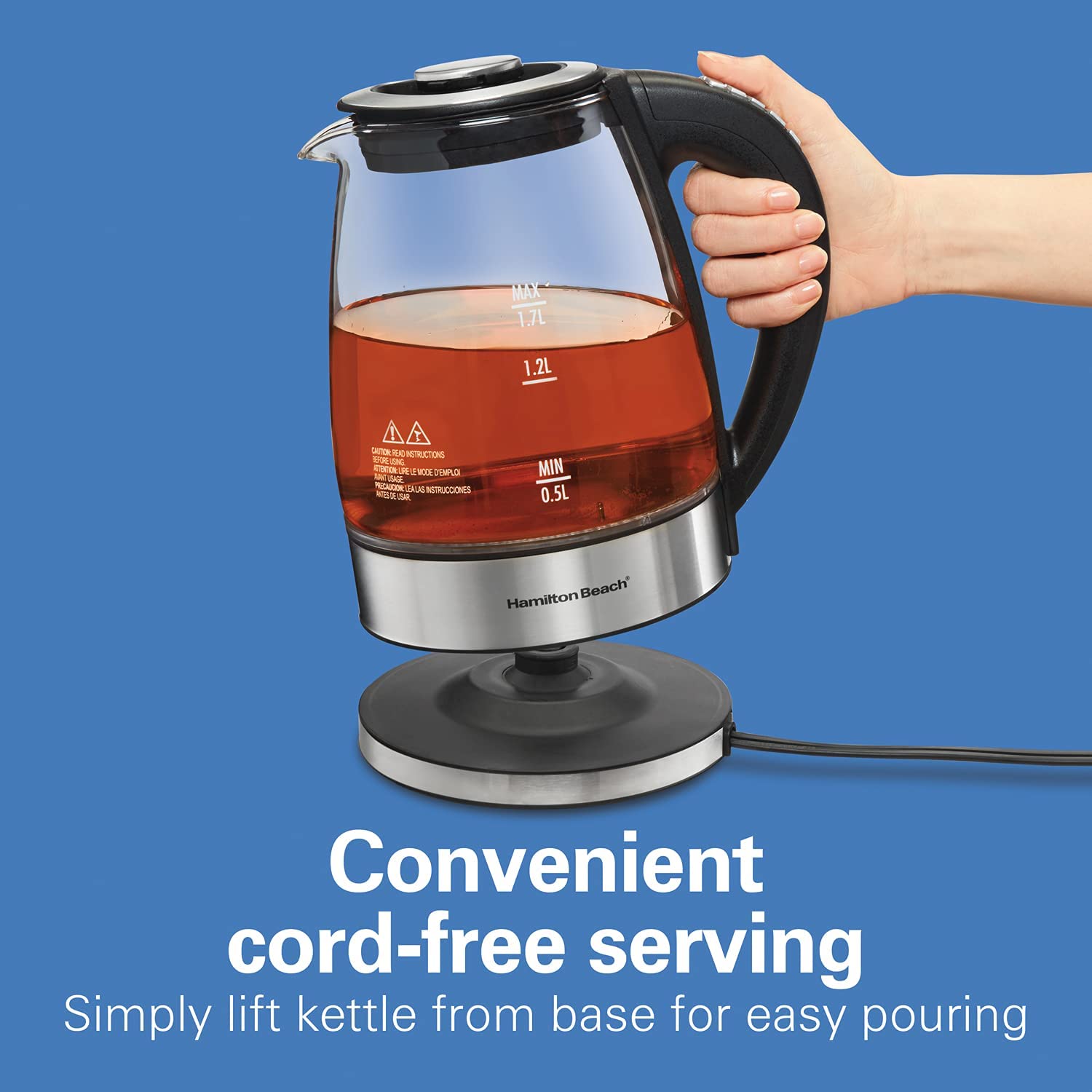 Hamilton Beach Temperature Control Glass Electric Hot Water Kettle & Boiler with Removable Tea Infuser. 1.7L. Cordless. Keep Warm. Auto-Shutoff & Boil-Dry Protection (40942)