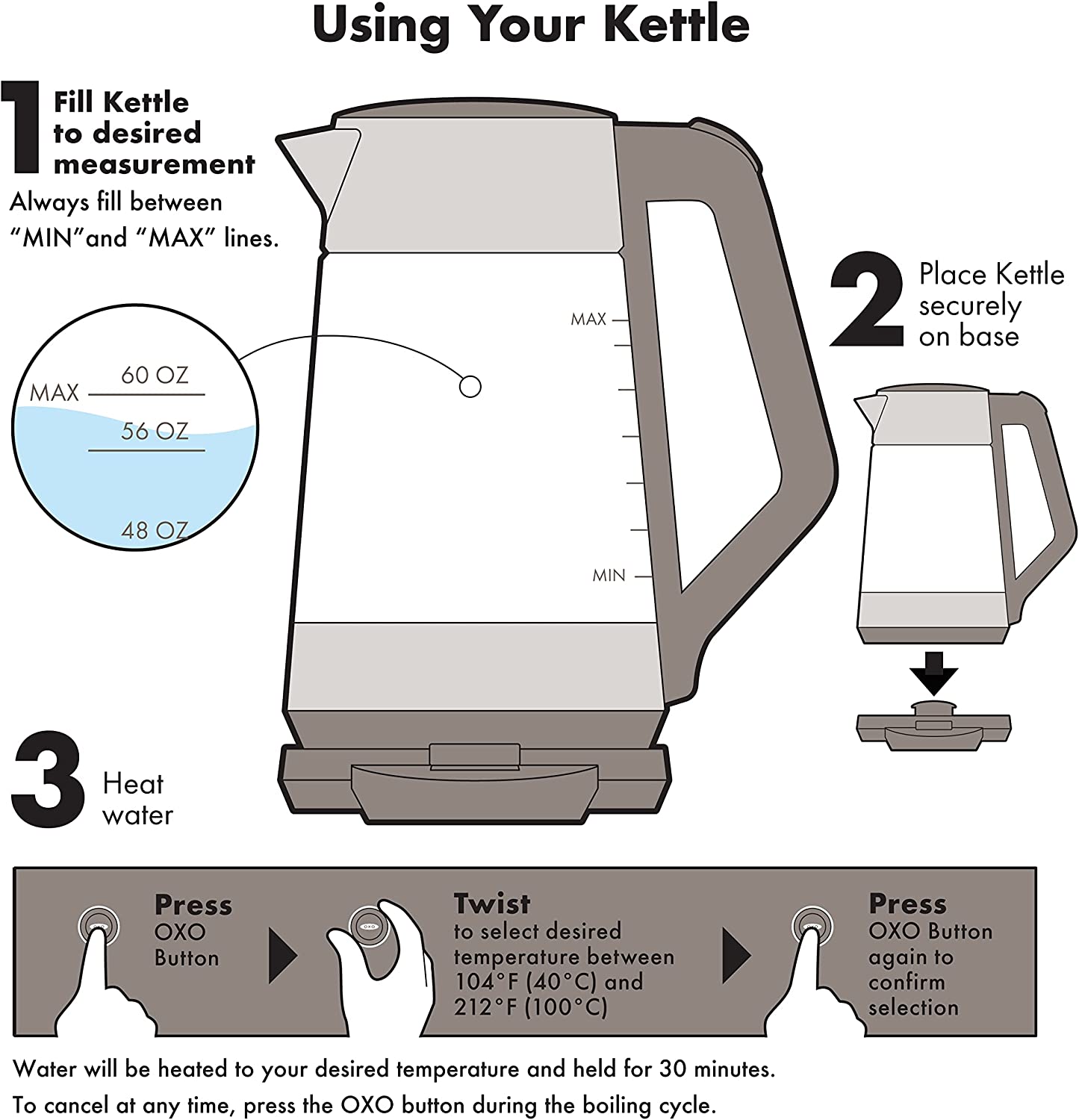 OXO Brew Adjustable Temperature Kettle. Electric. Clear