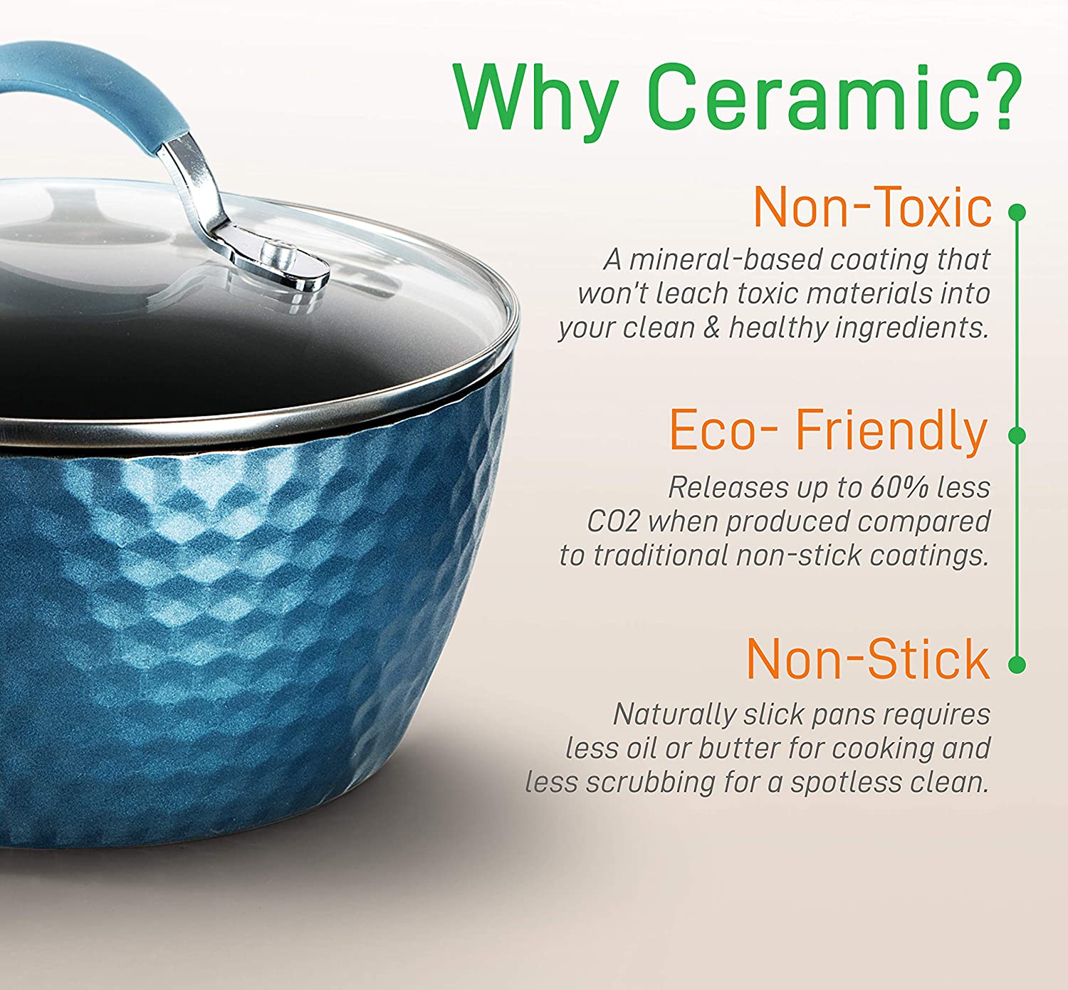 NutriChef Nonstick Cookware Excilon | Home Kitchen Ware Pots & Pan Set with Saucepan. Frying Pans. Cooking Pots. Lids. Utensil PTFE/PFOA/PFOS Free. 11 Pcs. Royal Blue