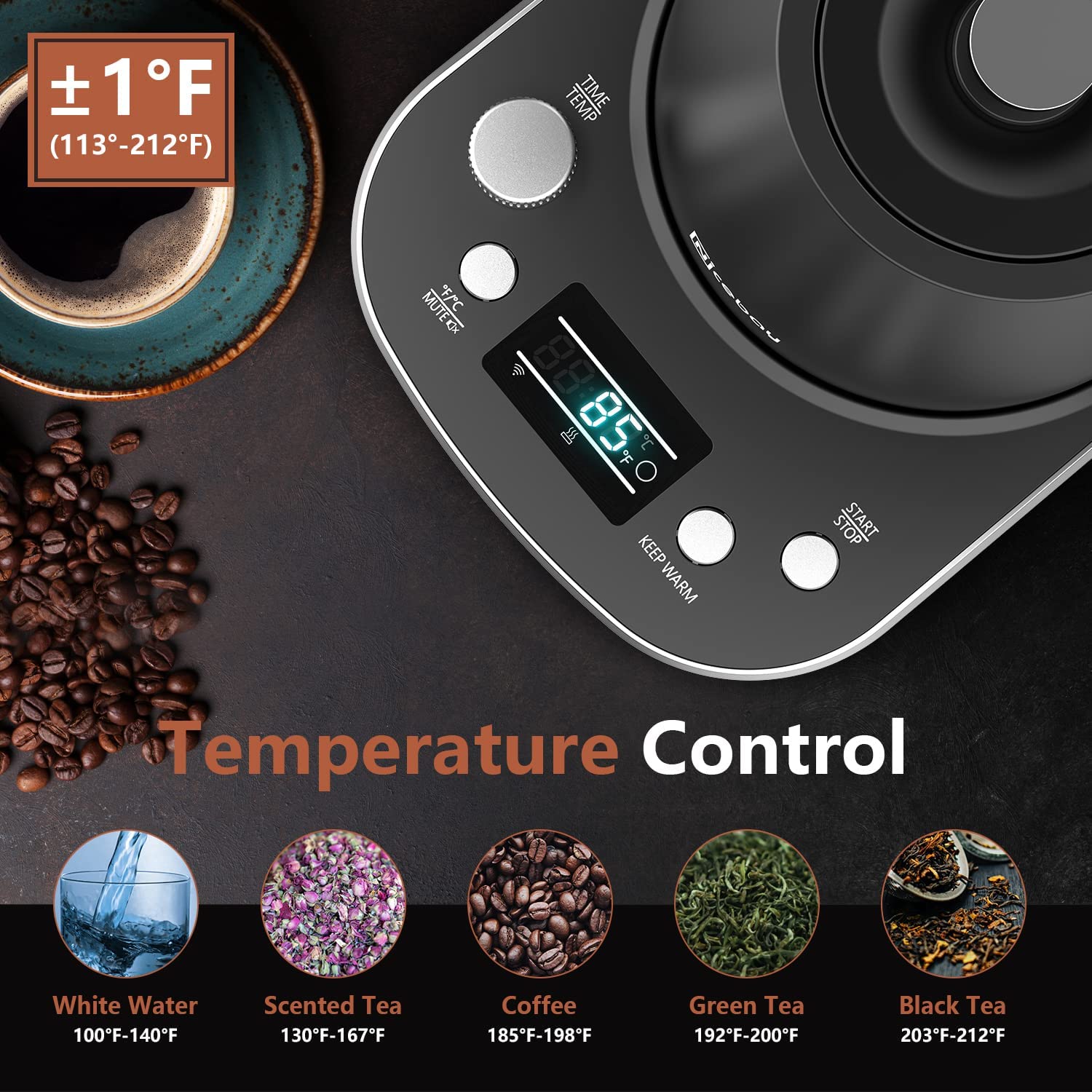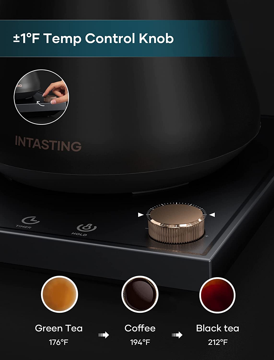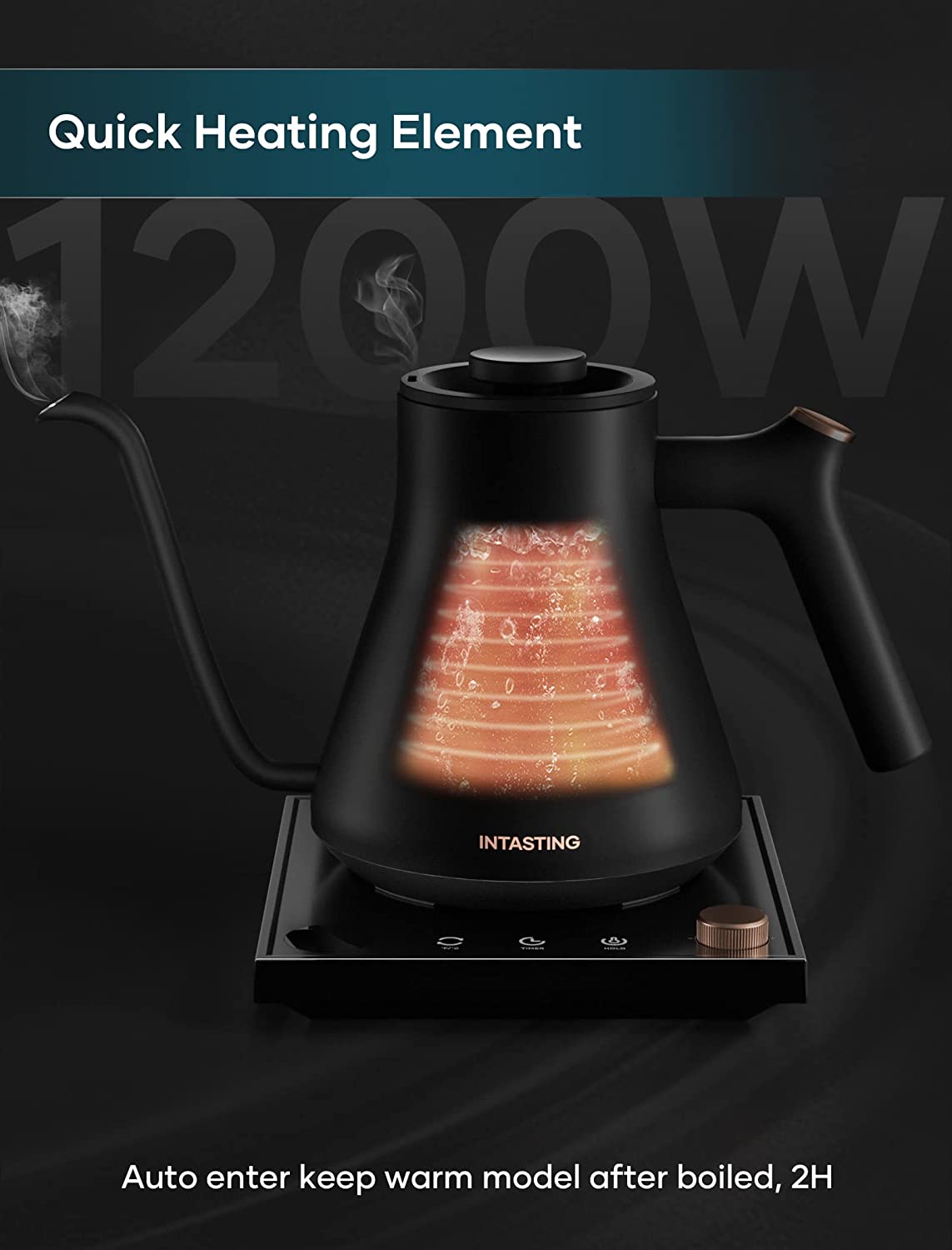 Electric Kettle. INTASTING Electric Gooseneck Kettles Temperature Control. 0.9L Stainless Steel Inner. ±1℉ Precision. Quick Heating. for Hot Water. Pour Over Coffee. Tea. Matte Black