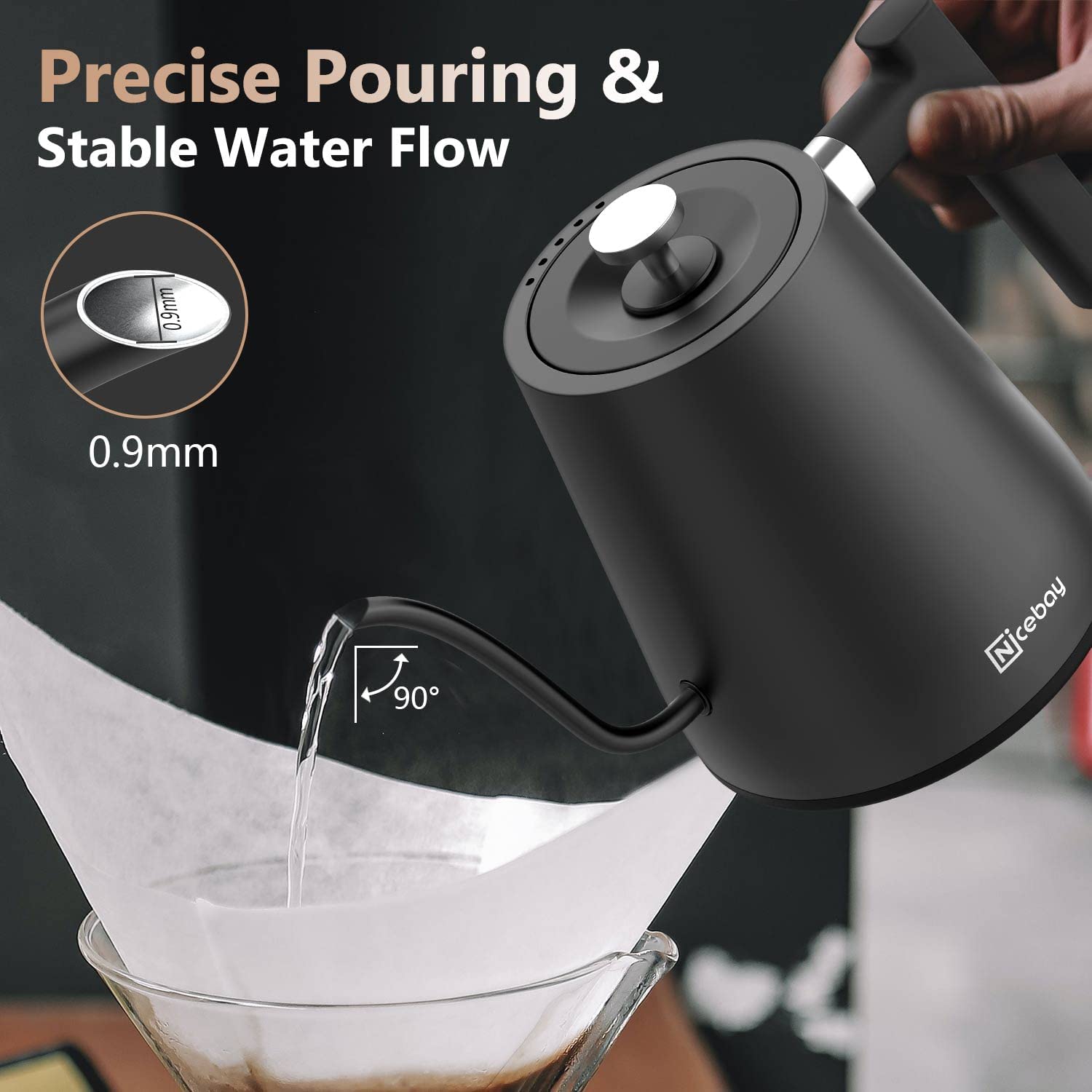 Nicebay Electric Gooseneck Kettle. Electric Kettle with Heating Base with Buttons and LED Display. Pure Stainless Steel Inner Electric Tea Kettle. 1200W Fast Heating. Pour Over Coffee Kettle. 0.8L