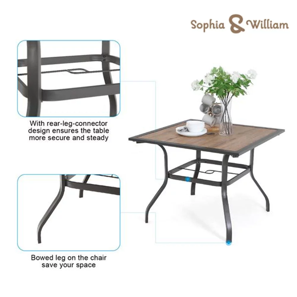 Sophia & William 37″ Outdoor Square Dining Table with Steel Frame for 4 Chairs