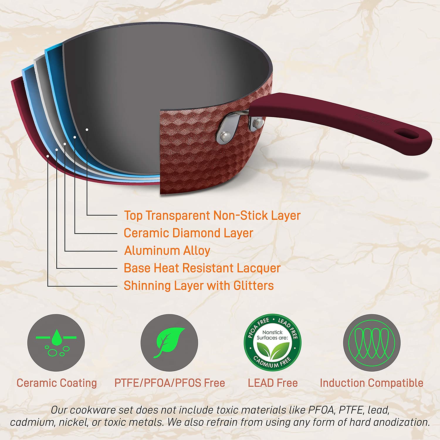 NutriChef Nonstick Cookware Excilon Home Kitchen Ware Pots & Pan Set with Saucepan Frying Pans. Cooking Pots. Lids. Utensil PTFE/PFOA/PFOS free. 11 Pcs. Purple Diamond. One size
