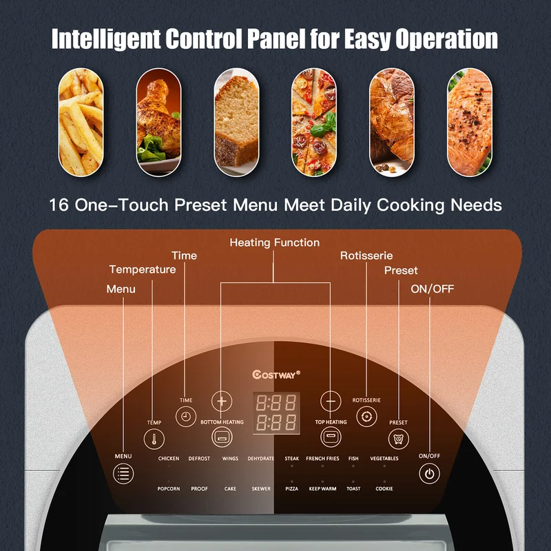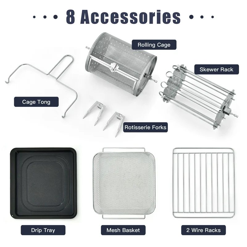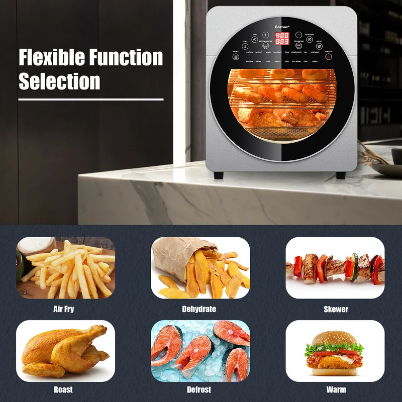 Costway EP24760SL 15.5 qt. Silver 16-in-1 Air Fryer Oven Toaster Oven Rotisserie Dehydrator with Accessories