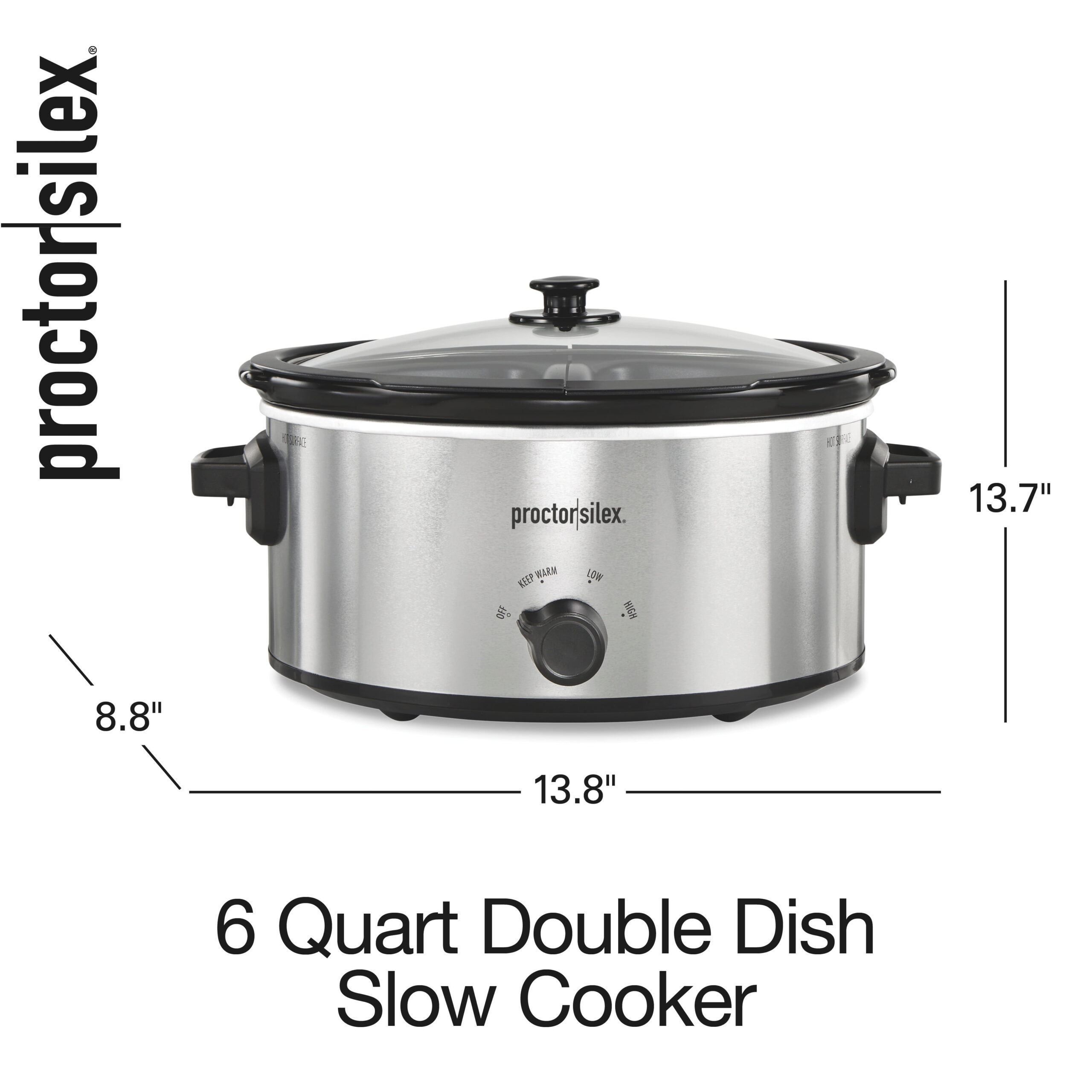 Proctor Silex 6 Quart Double Dish Slow Cooker. Serves 7+. Silver. 33563