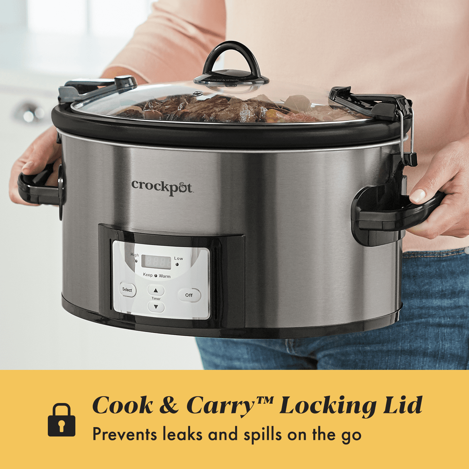 Crockpot™ 7-Quart Easy-to-Clean Cook & Carry™ Slow Cooker. Black Stainless Steel