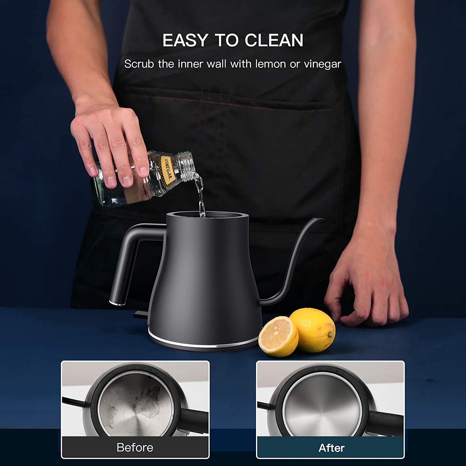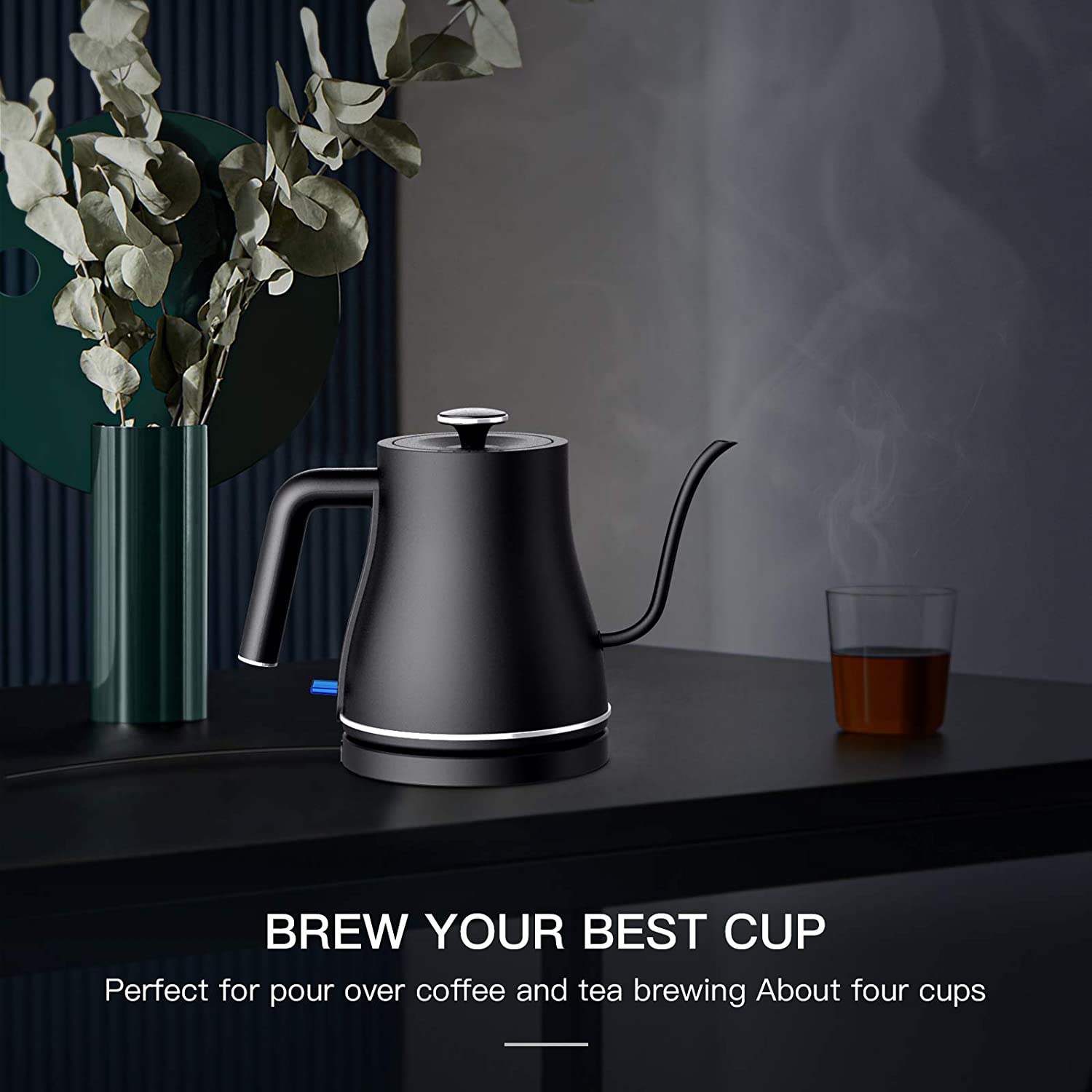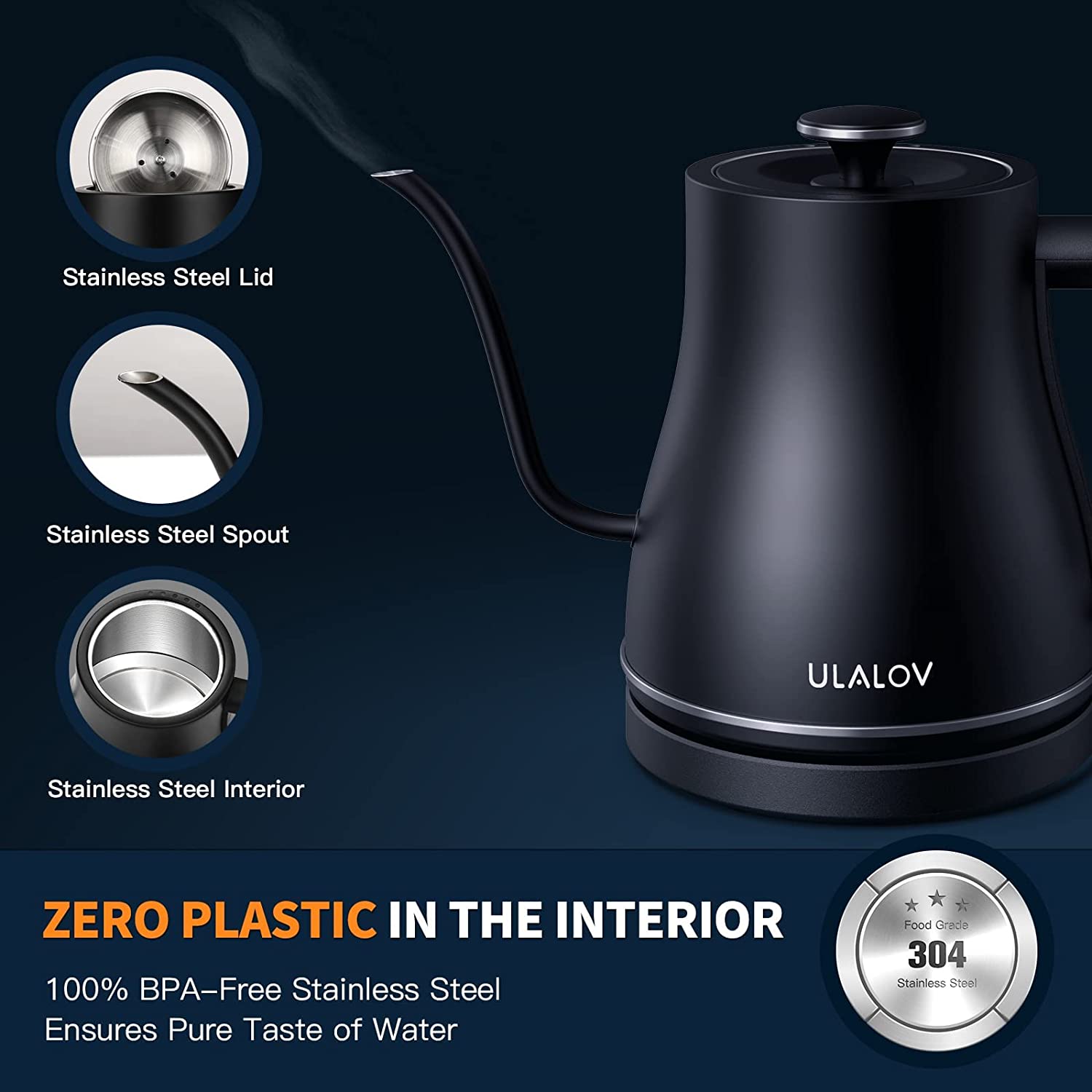 Ulalov Electric Gooseneck Kettle Ultra Fast Boiling Hot Water Kettle 100% Stainless Steel for Pour-over Coffee & Tea. Leak-Proof Design. Auto Shutoff Anti-dry Protection. 1200W-0.8L. Matte Black