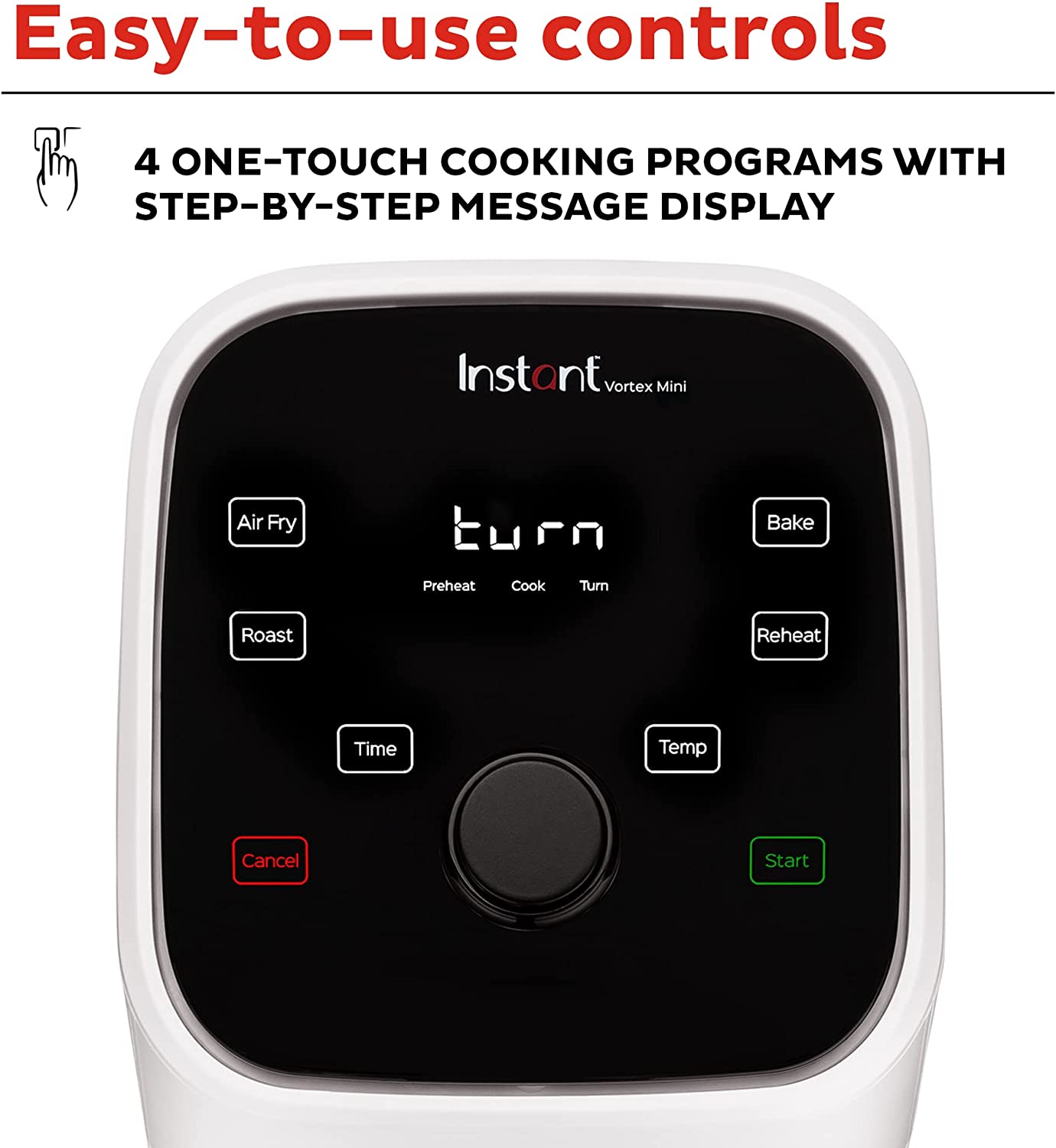 Instant Vortex 4-in-1. 2-QT Mini Air Fryer Oven Combo. From the Makers of Instant Pot with Customizable Smart Cooking Programs. Nonstick and Dishwasher-Safe Basket. App with over 100 Recipes. White