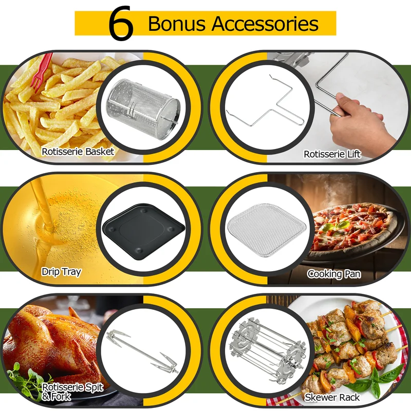 Costway EP24925US-DK 6 qt. Black 1700W Electric Air Fryer Oven 8-In-1 Rotisserie Dehydrator w/Accessories