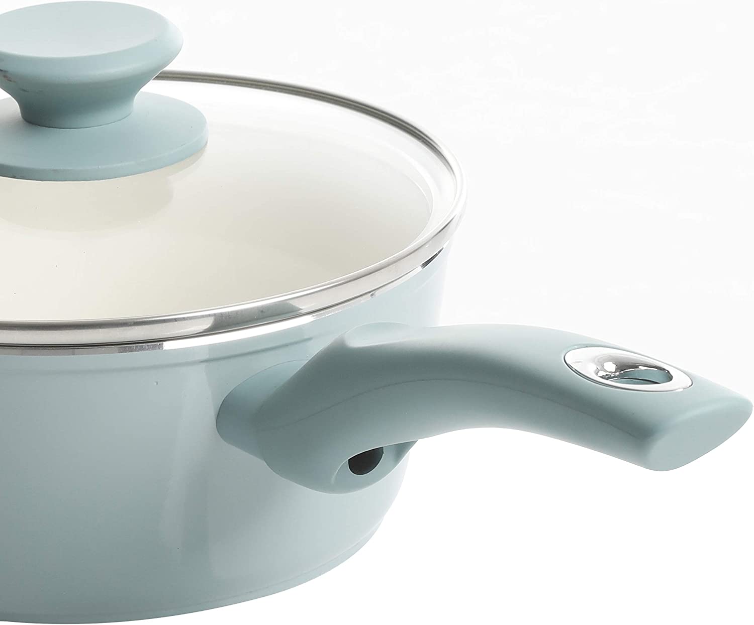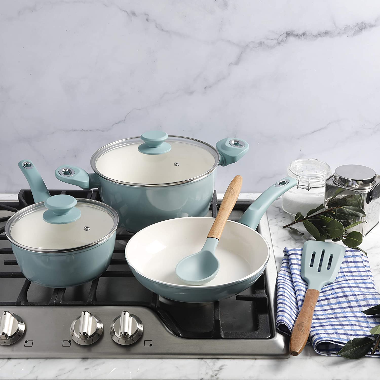 Gibson Home Plaza Café Forged Aluminum Healthy Ceramic Cookware. 7-Piece Set. Sky Blue