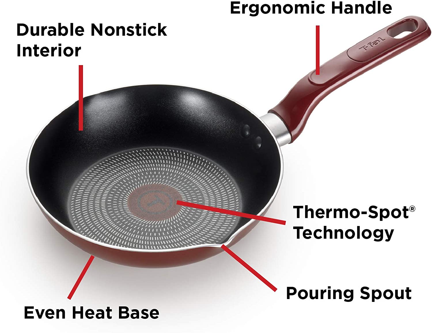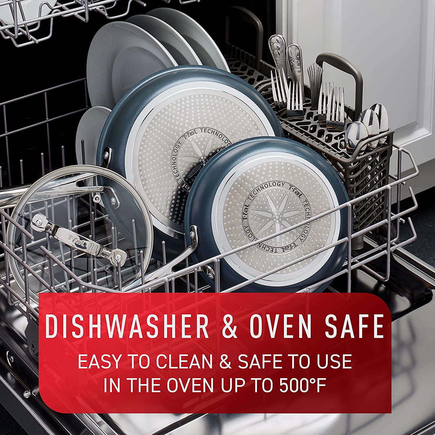 T-fal. Dishwasher Safe Cookware Set. 18 Piece. Red Initiatives Nonstick Inside
