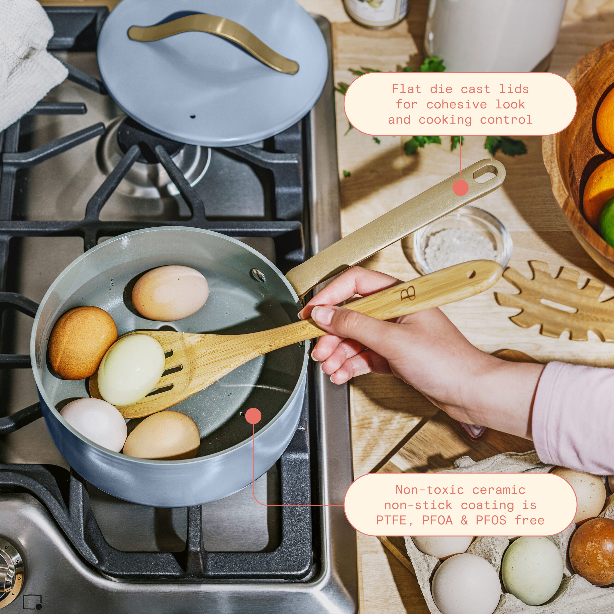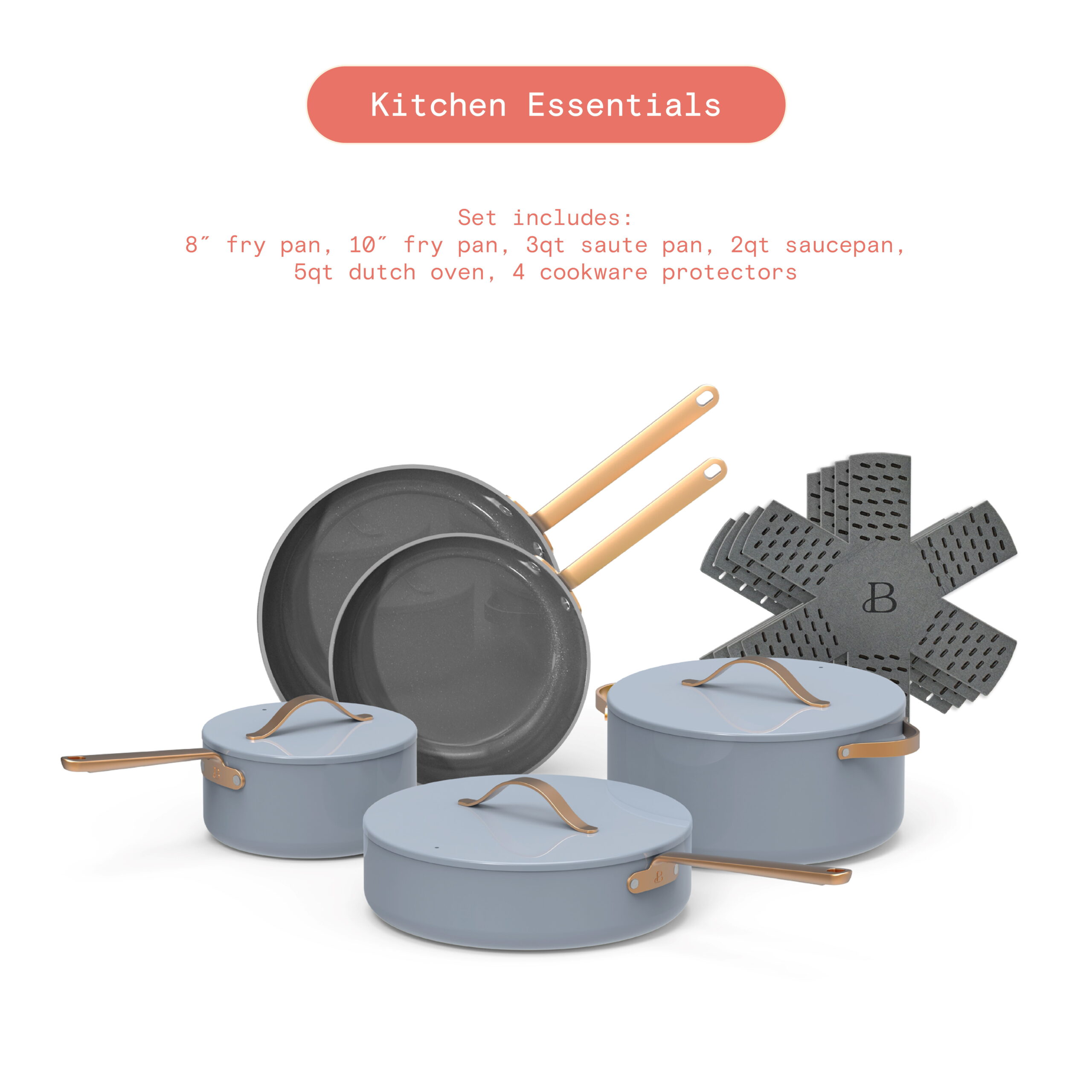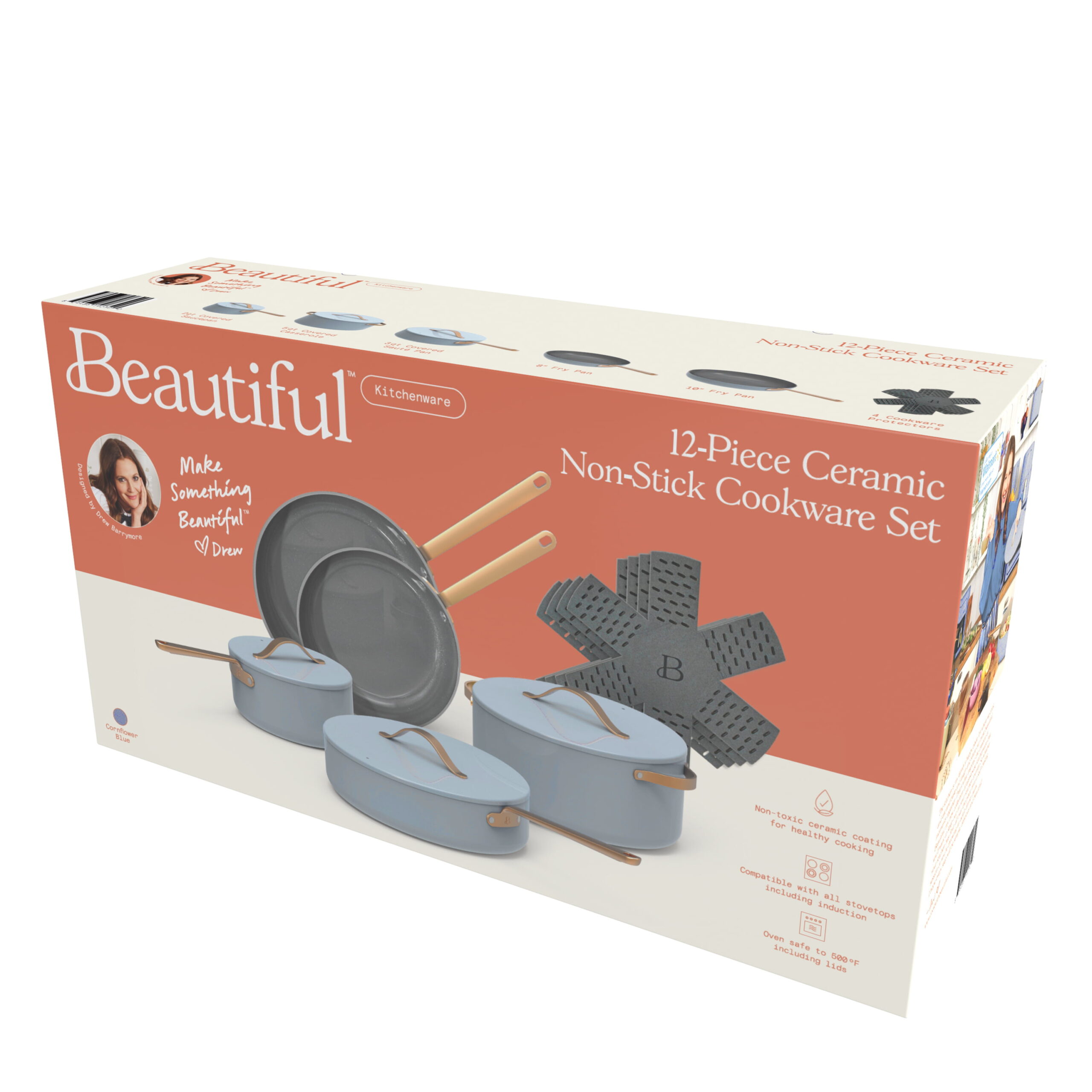Beautiful 12pc Ceramic Non-Stick Cookware Set. Cornflower Blue by Drew Barrymore