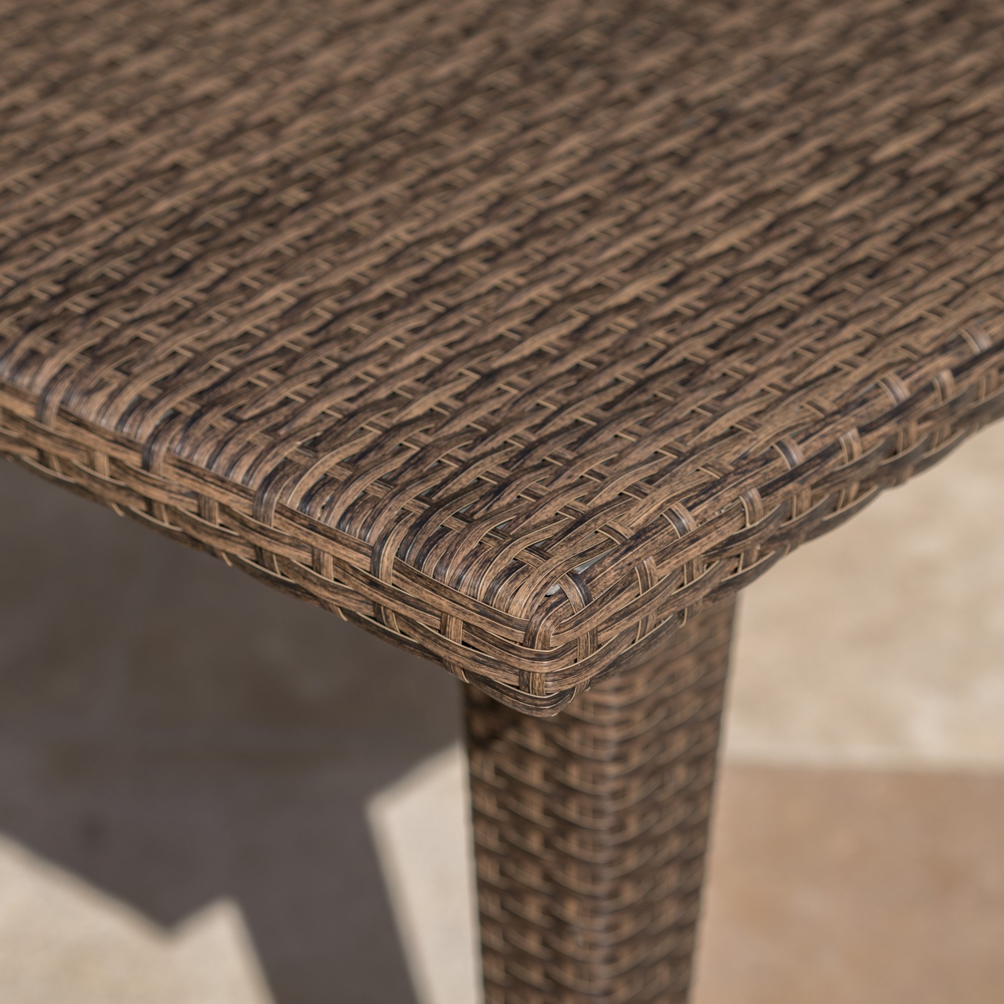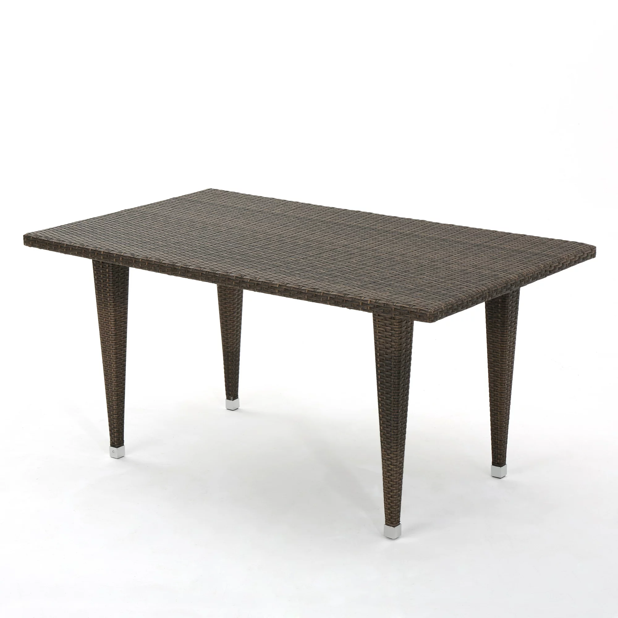 Noble House Draymond Outdoor Rectangle Wicker and Iron Dining Table. Mix Mocha