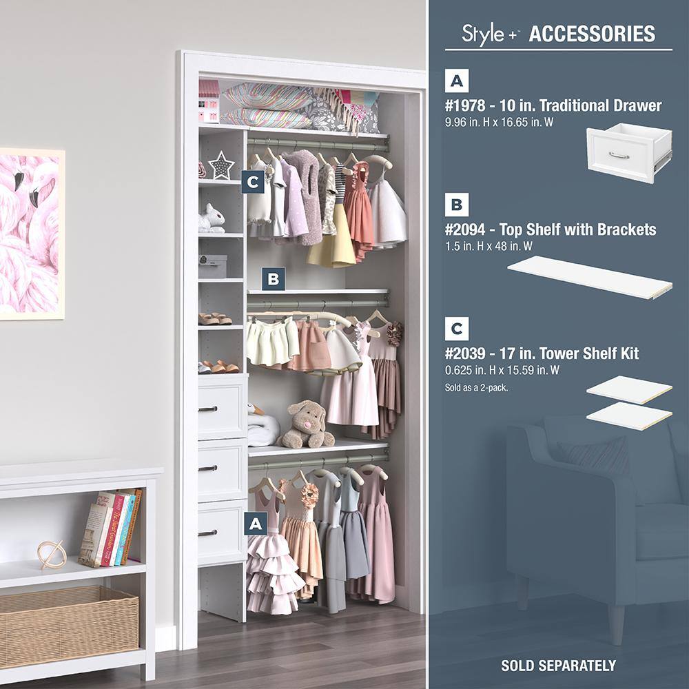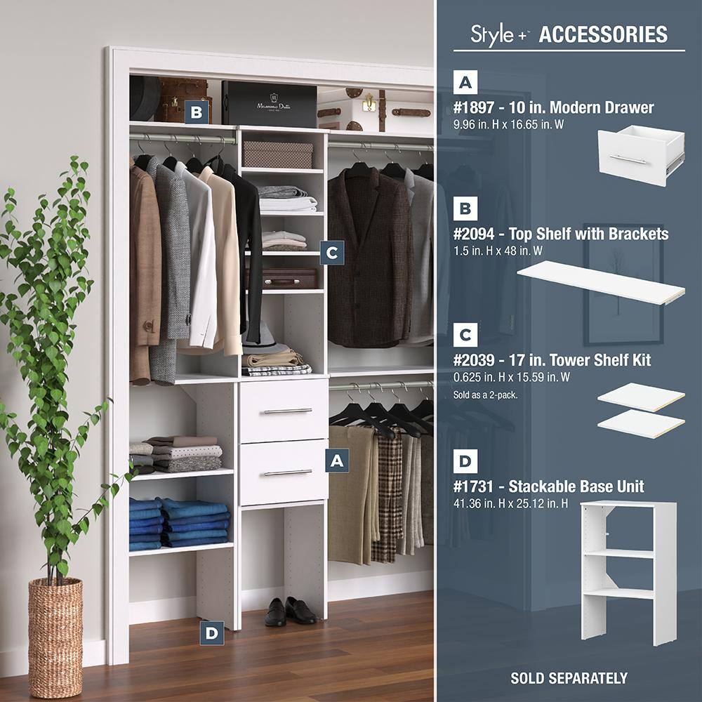 ClosetMaid 4358 Style+ 72 in. W - 113 in. W White Narrow Wood Closet System